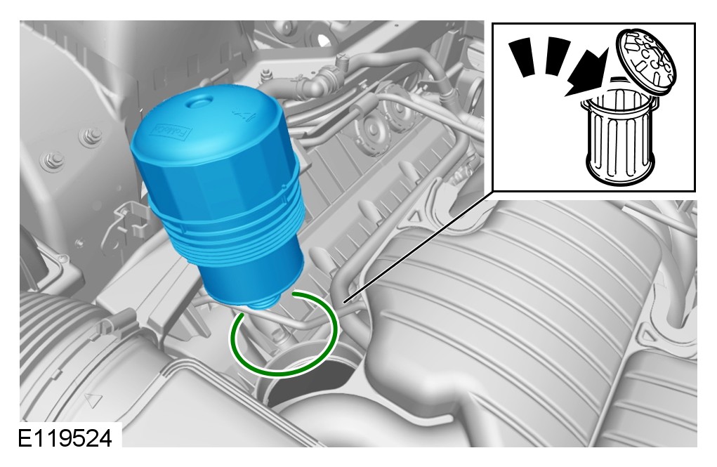 1 Lubricate the oil filter element O-ring seal with clean engine oil.