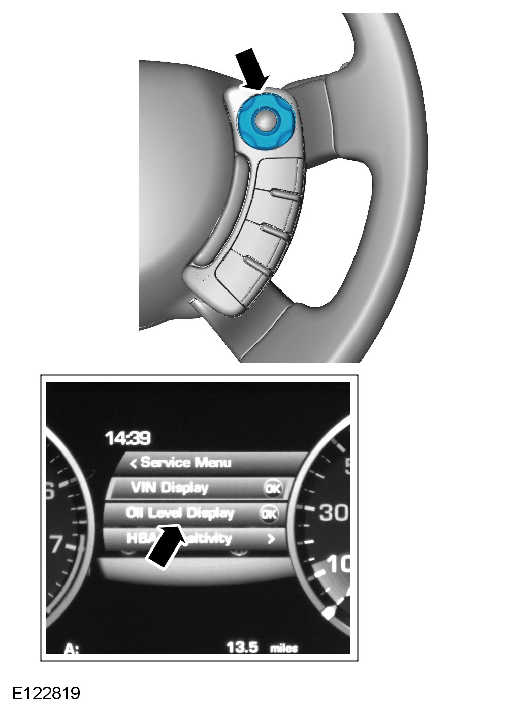 Press the right-hand directional button to access the Oil Level Display.