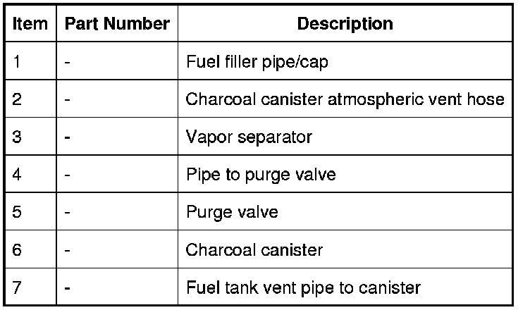 Fuel vapor is generated by the fuel in the tank and the amount of vapor produced increases as the fuel heats up. Fuel vapor can flow freely to the charcoal canister via the tank venting system. The venting system consists of roll over valves and a liquid vapor separator mounted on the top of the tank and connected via a breather hose. The breather hose allows the hydrocarbon fuel vapor to flow to the charcoal canister.