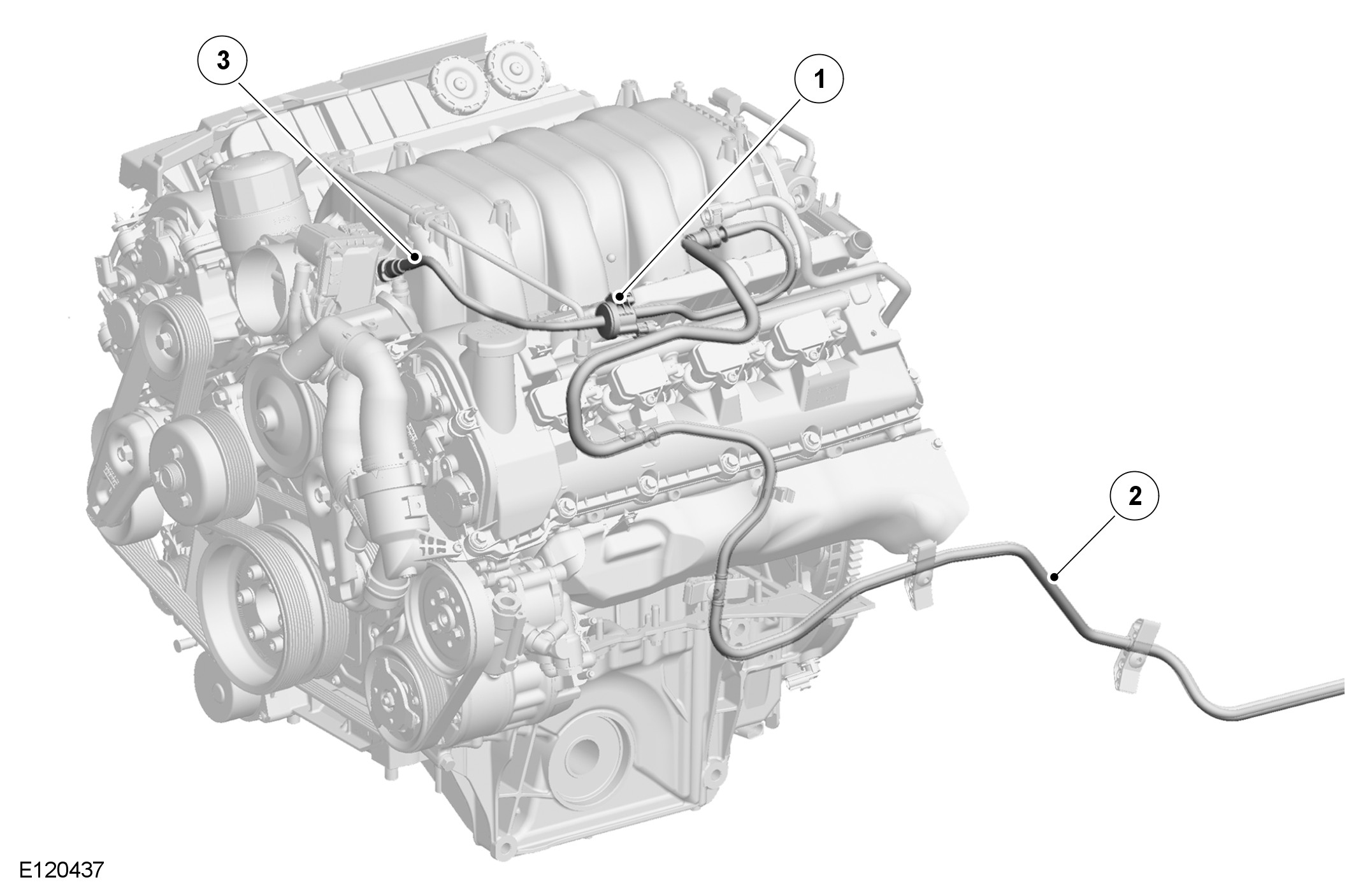The purge valve is installed on a bracket attached to the LH (left-hand) cylinder head cover. The pipe to the engine from the purge valve is connected to the intake manifold (naturally aspirated vehicles), or SC (supercharger) front cover (SC (supercharger) vehicles), with a quick release connector. The pipe to the charcoal canister from the purge valve is installed between the LH (left-hand) cylinder head cover and ignition coil cover, then goes through the left front suspension housing and along the underside of the vehicle, parallel with the fuel feed line. Just forward of the left rear wheel arch the pipe goes across the top of the fuel tank to the charcoal canister.