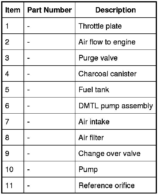 The DMTL system comprises the previously described components of the EVAP (evaporative emission) system with the following additional components; a DMTL pump and a DMTL filter.