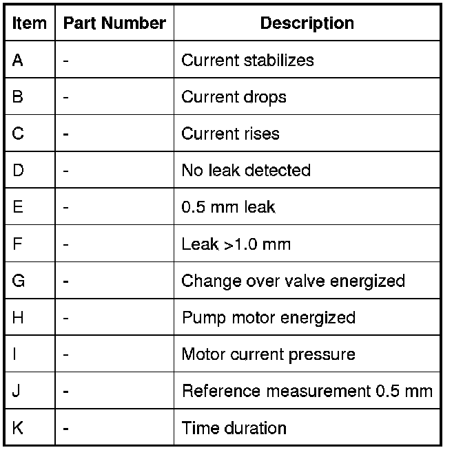 When the ECM (engine control module) activates the DMTL system, it first activates only the DMTL pump motor. This pumps air through a 0.5 mm (0.02 in) reference orifice, which causes the electric motor to draw a specific amperage value. This value equates to the size of the reference orifice.
