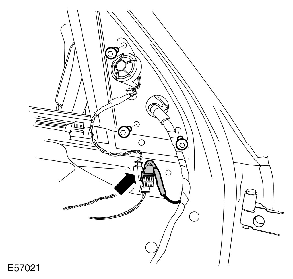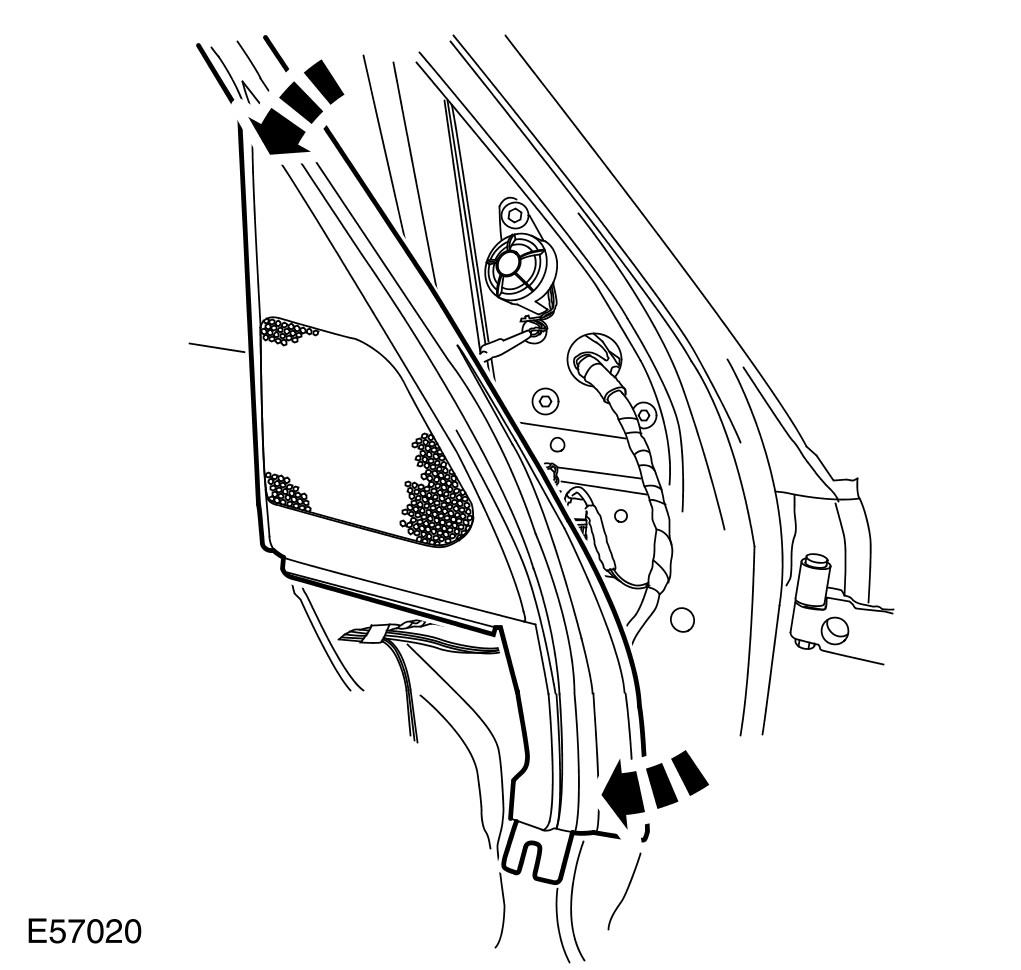 1 Remove the front door trim panel. For additional information, refer to Front Door Trim Panel
