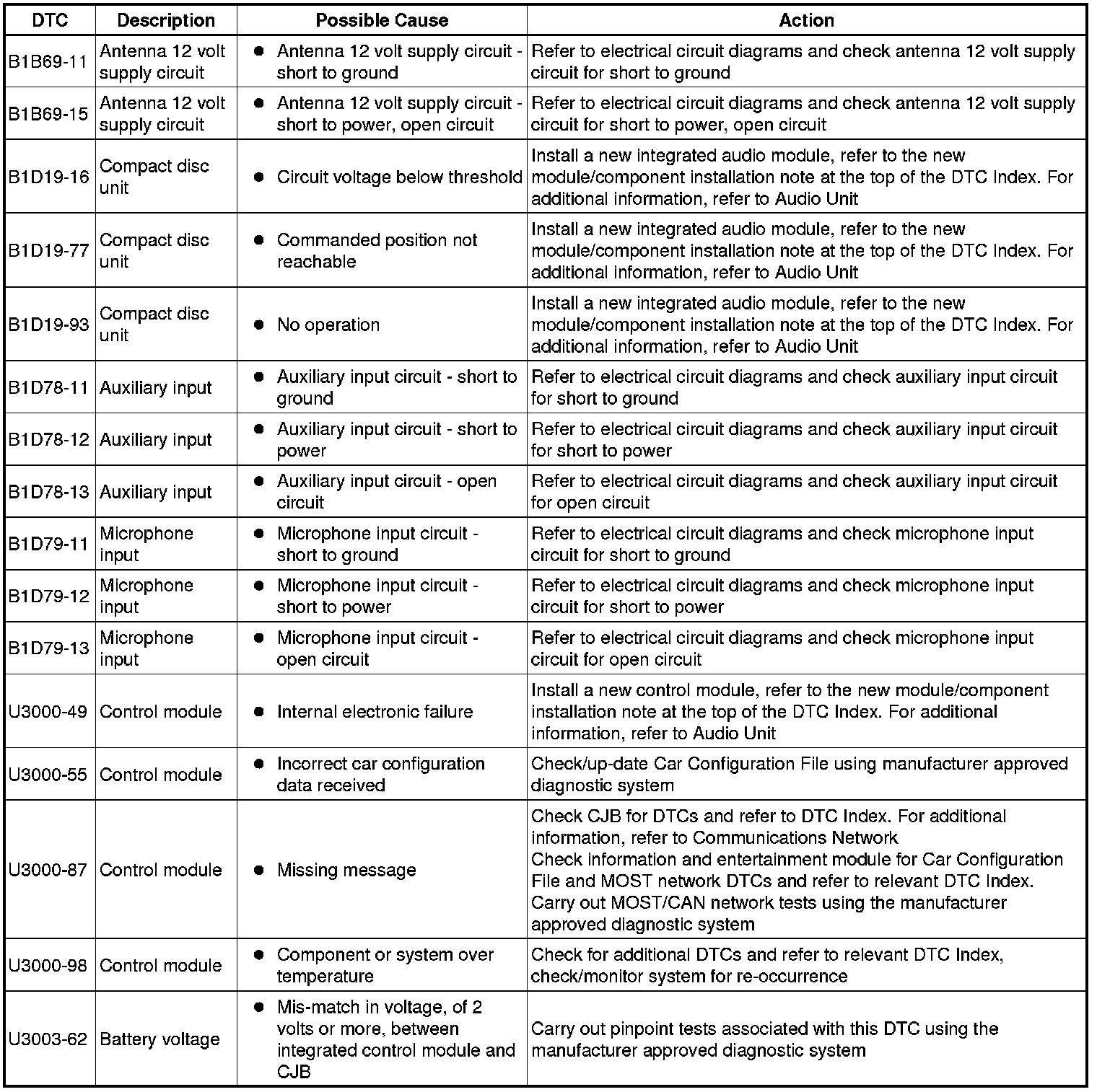 Generic scan tools may not read the codes listed, or may read only 5-digit codes. Match the 5 digits from the scan tool to the first 5 digits of the 7-digit code listed to identify the fault (the last 2 digits give extra information read by the manufacturer-approved diagnostic system).