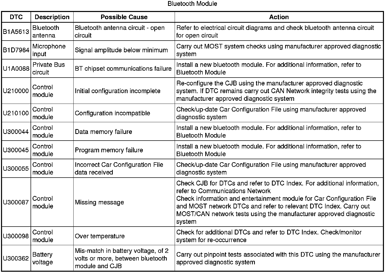 Generic scan tools may not read the codes listed, or may read only 5-digit codes. Match the 5 digits from the scan tool to the first 5 digits of the 7-digit code listed to identify the fault (the last 2 digits give extra information read by the manufacturer-approved diagnostic system).