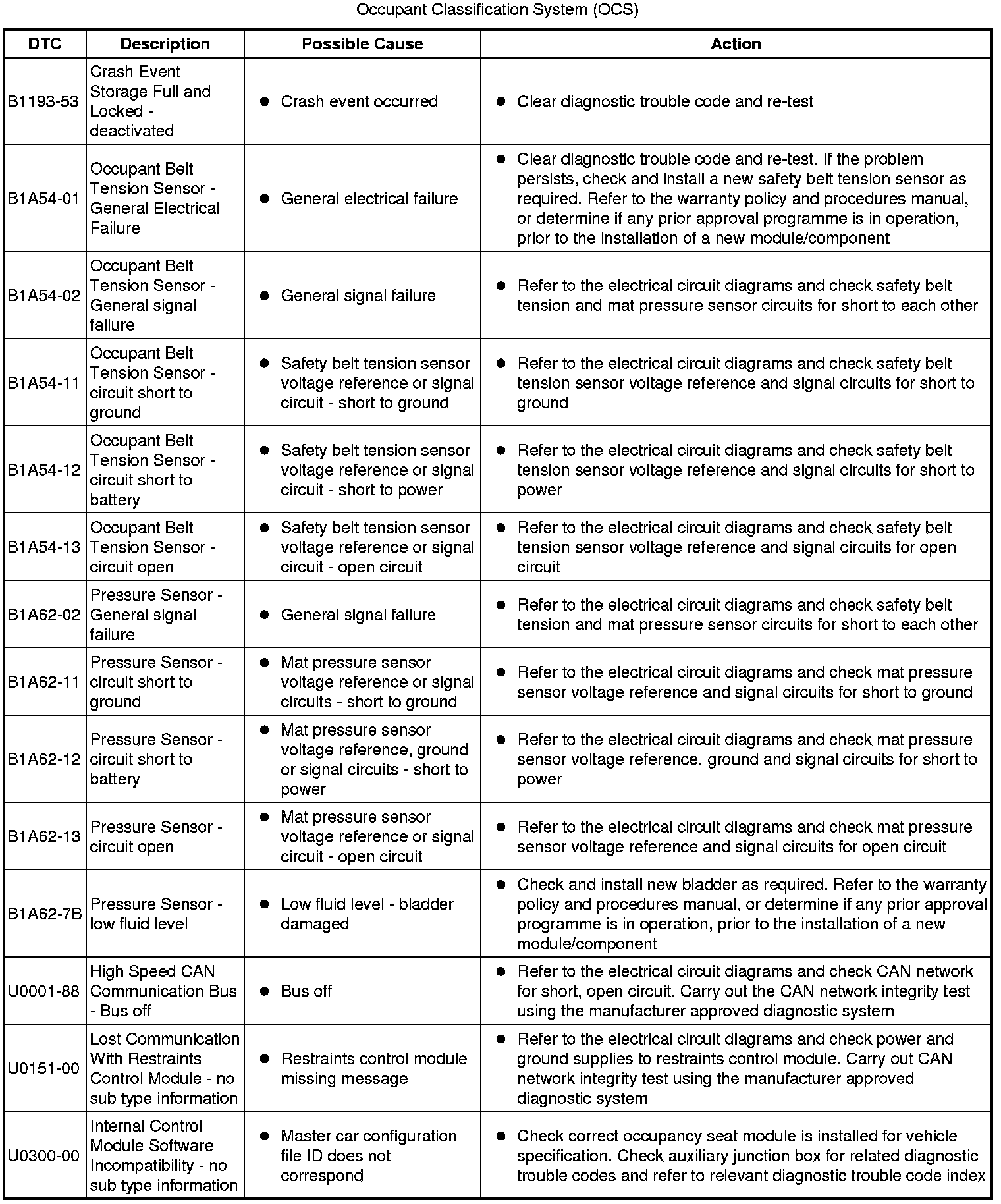 For a detailed description of the occupant classification system, refer to the relevant Description and Operation section in this product. For additional information, refer to Air Bag Systems Description and Operation
