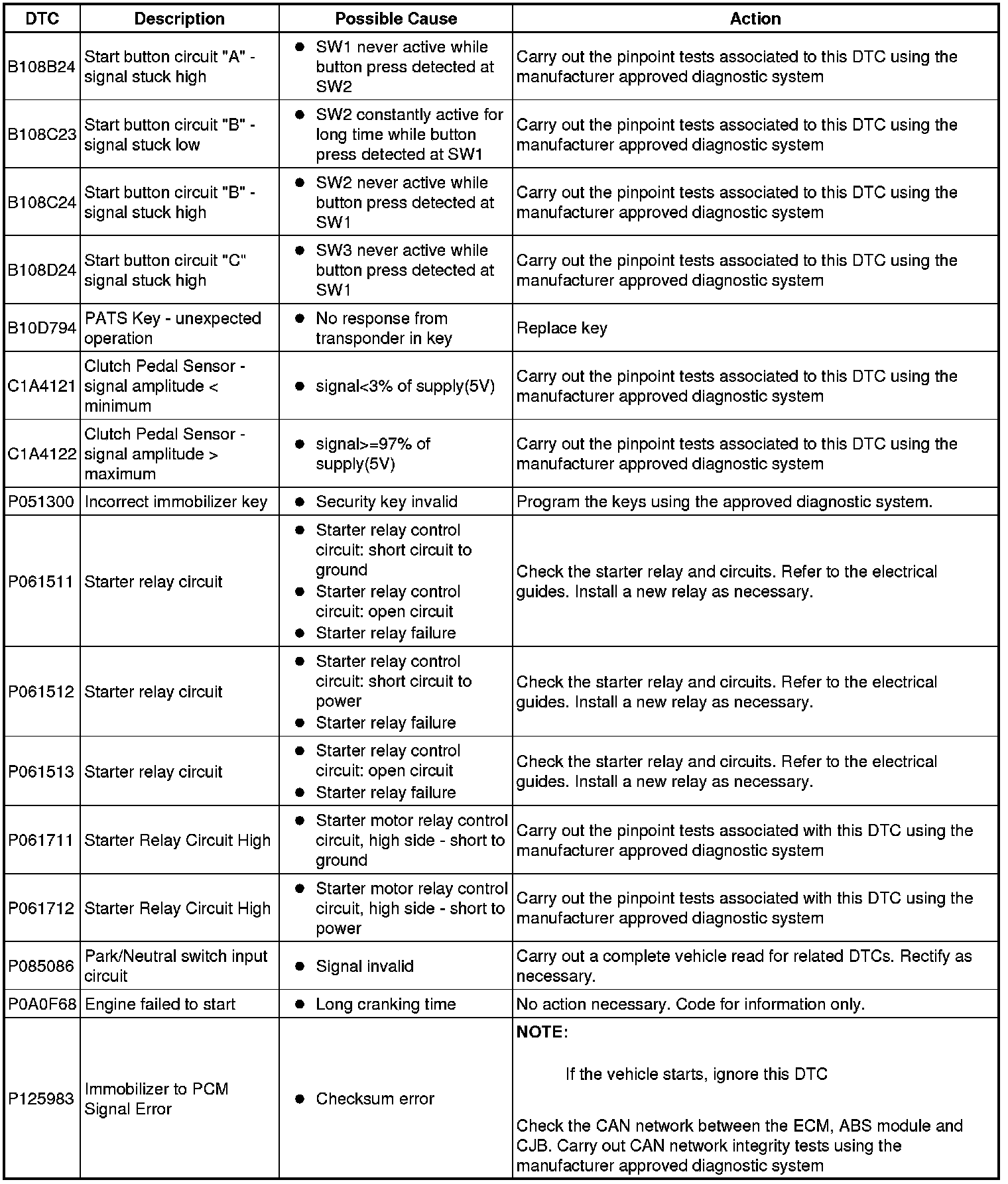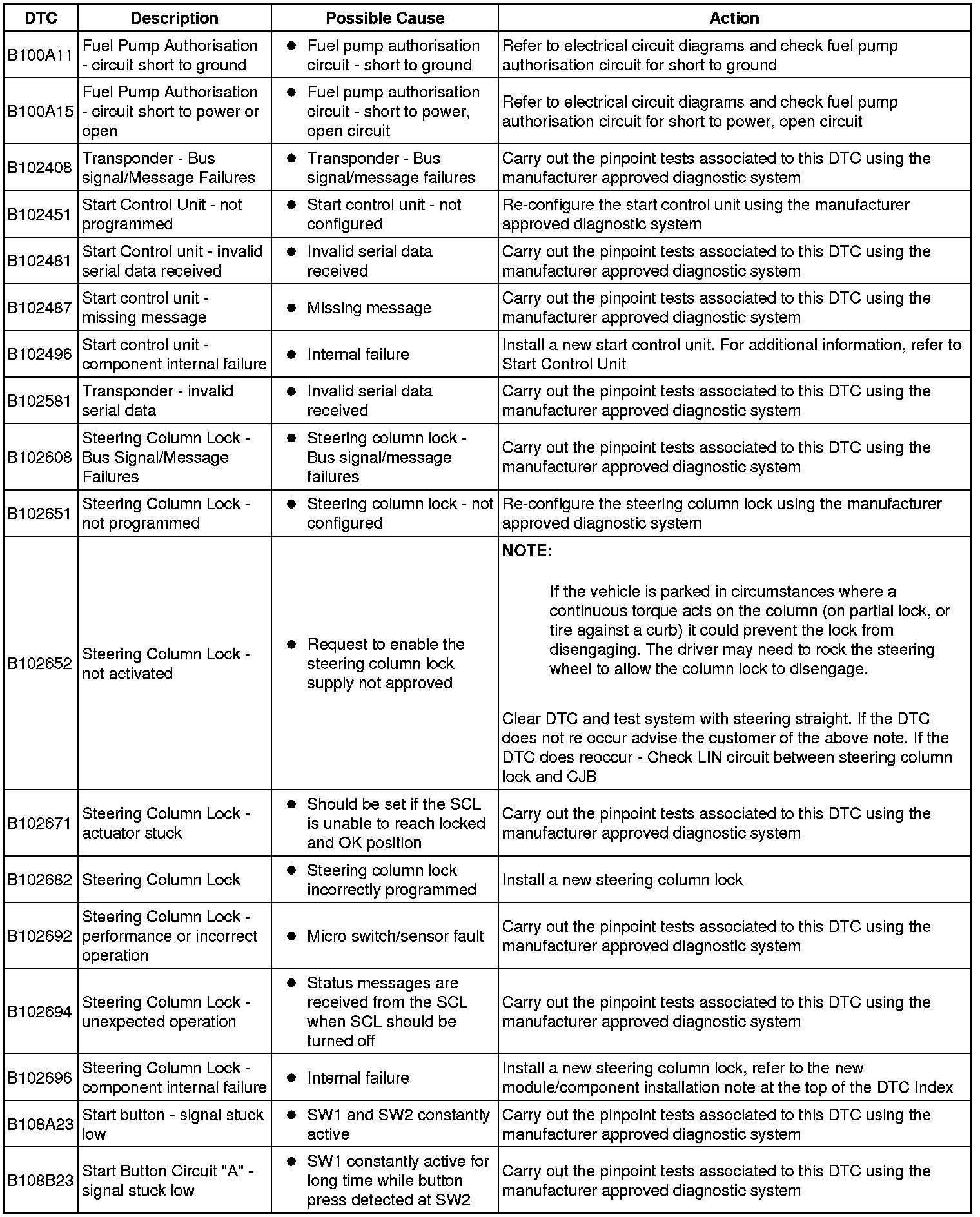 Generic scan tools may not read the codes listed, or may read only five digit codes. Match the five digits from the scan tool to the first five digits of the seven digit code listed to identify the fault (the last two digits give additional information read by the manufacturer approved diagnostic system).
