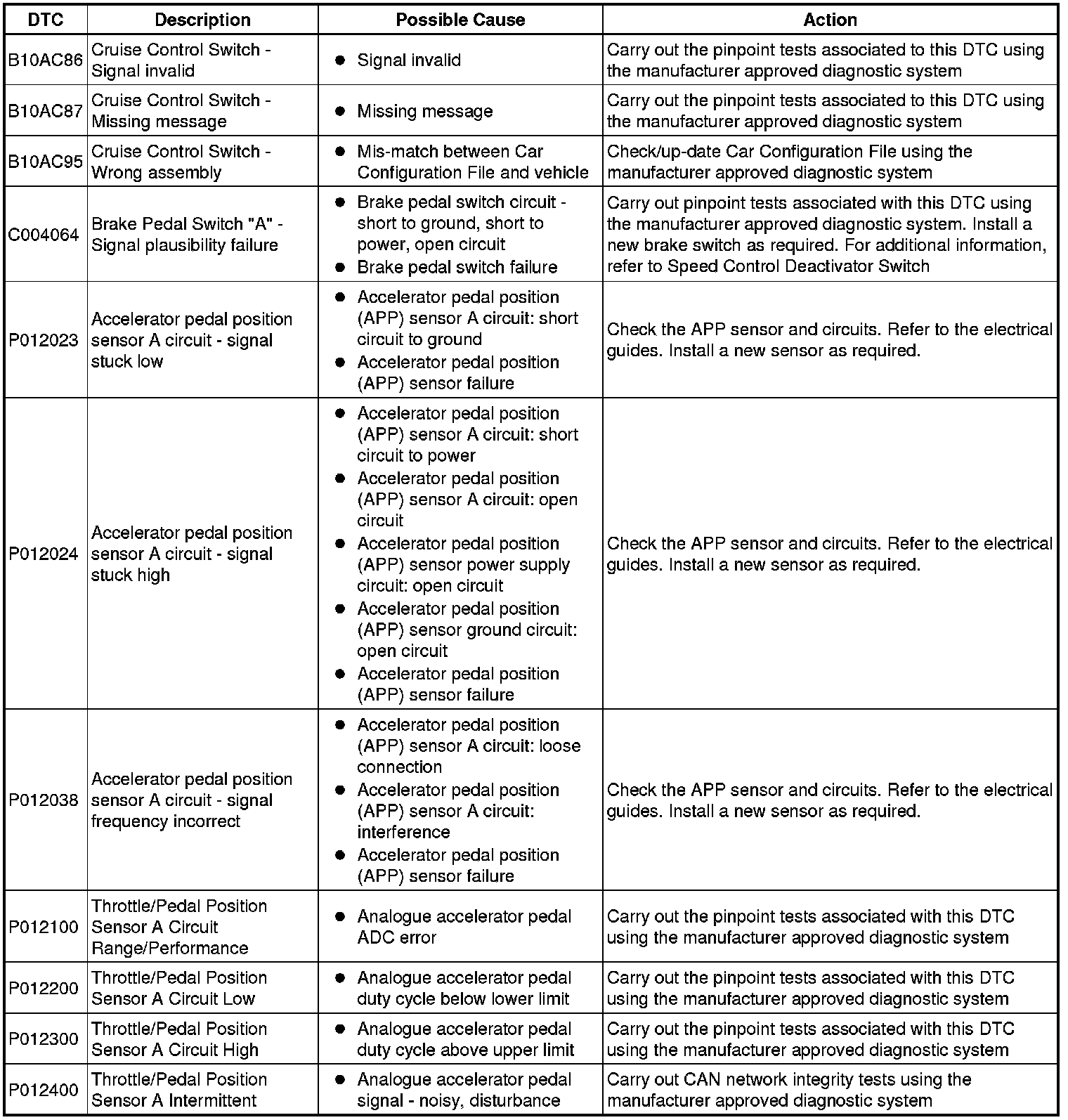 Generic scan tools may not read the codes listed, or may read only five digit codes. Match the five digits from the scan tool to the first five digits of the seven digit code listed to identify the fault (the last two digits give extra information read by the manufacturer-approved diagnostic system).