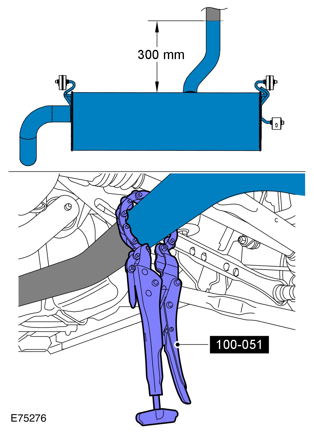 2 Using the special tool, cut the exhaust pipe at a distance of 300mm from the front of the rear muffler.