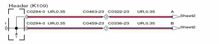 The wire length (in millimeters) is displayed after the colour and cross sectional area; for example, SR,0.35,480. In this example, the figure, 480 indicates the approximate position of the harness splice is 480mm from connector C2335.