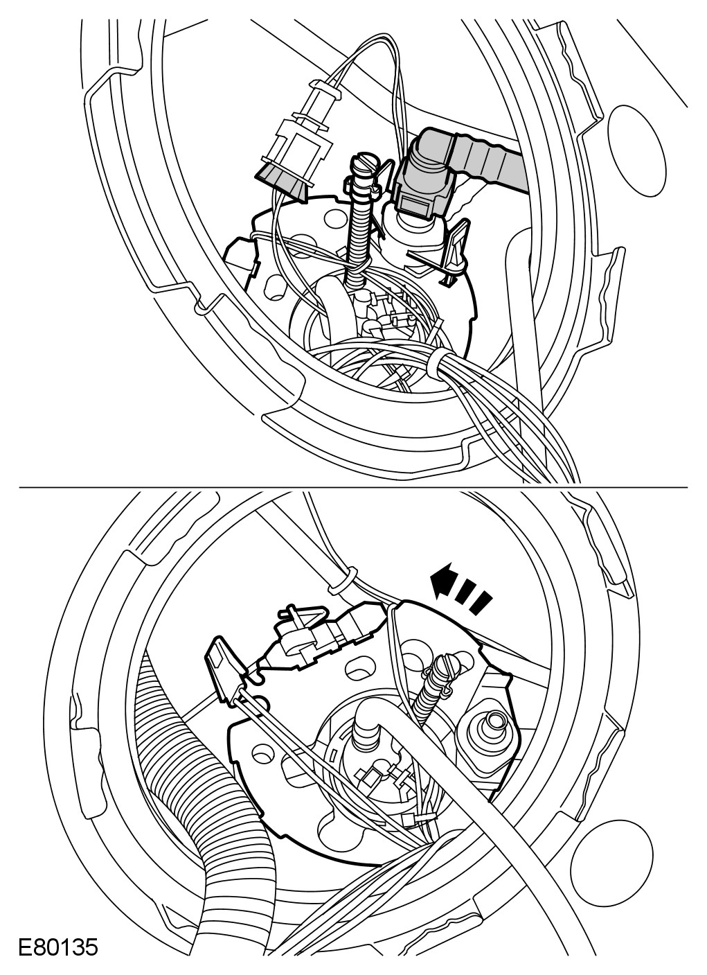 Push down to release the fuel sender from clip.