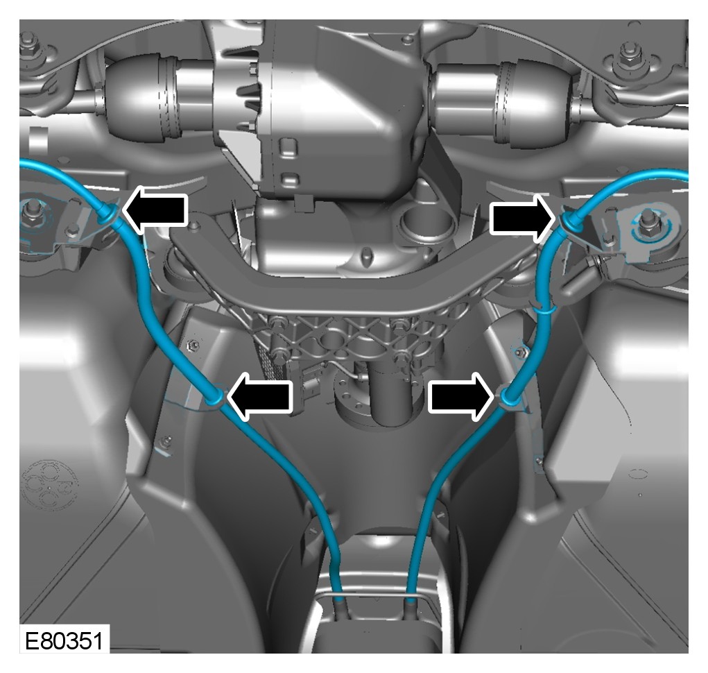 10 Release the parking brake cables from the fuel tank cradle.