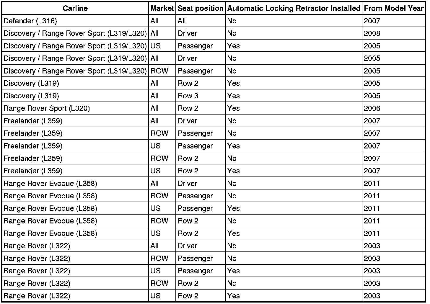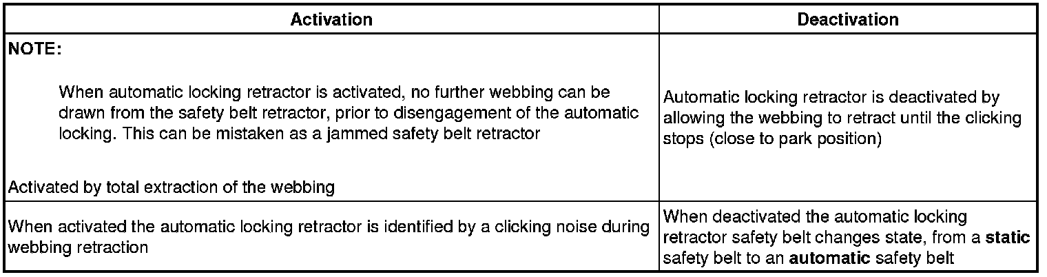 The safety belts in the following positions are equipped with an automatic locking retractor function: