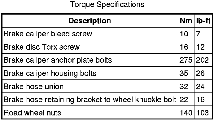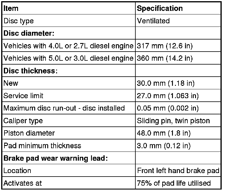 Front Disc Brake Specifications