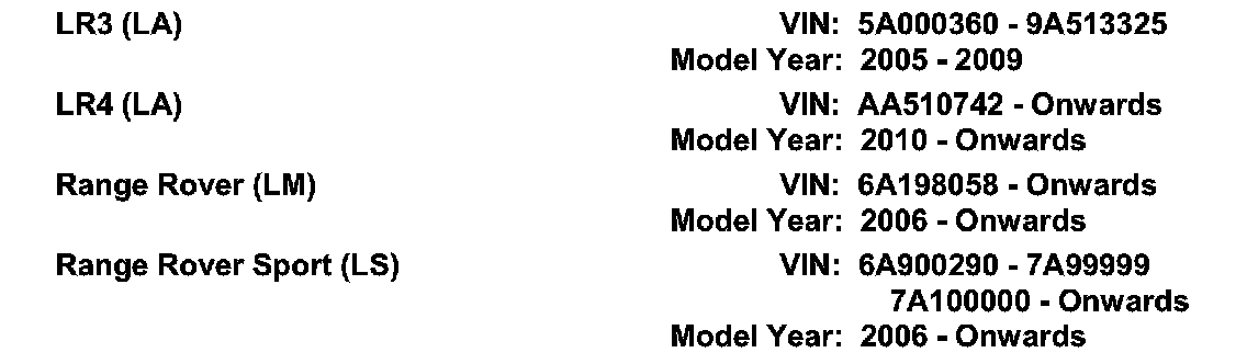 AFFECTED VEHICLE RANGE: