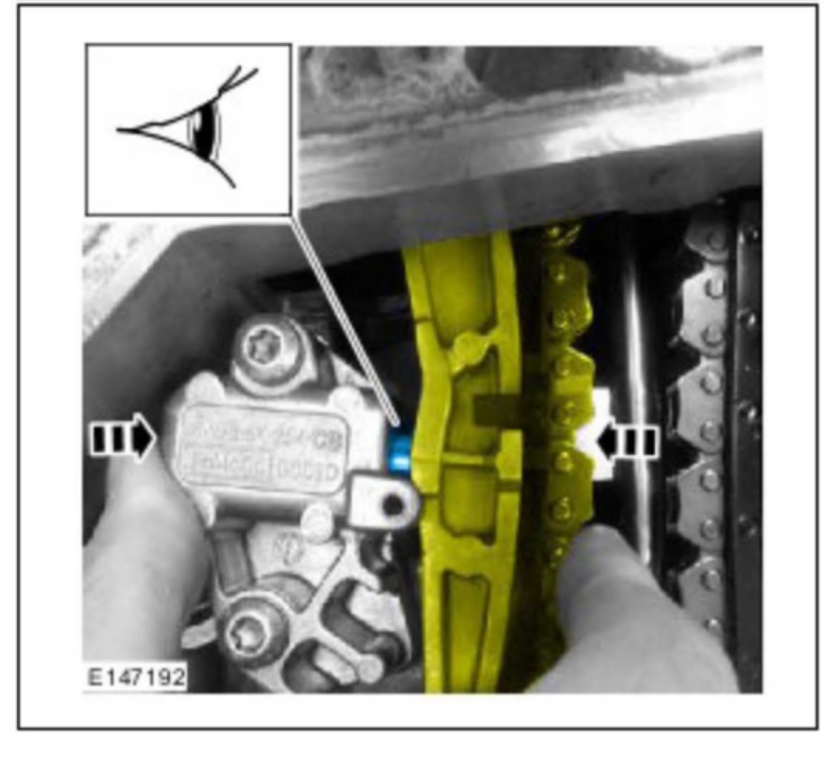 ^ Firmly squeeze the timing chain to see if the tensioner plunger retracts in to the tensioner body.