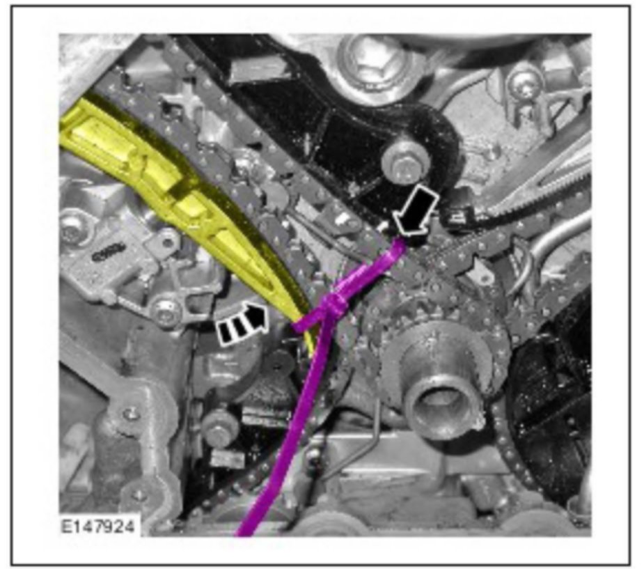 20. Refer to Workshop Manual section 303-01 and replace the tensioner blades, tensioners, chain guides and timing chain of the Timing Drive Components procedure.