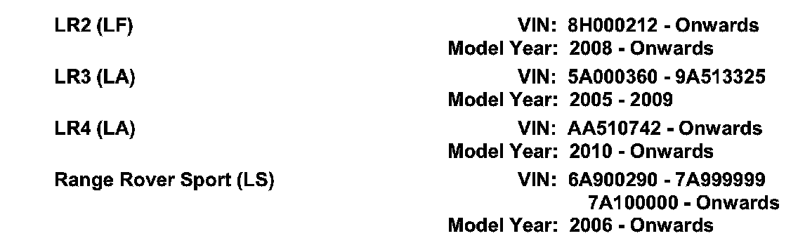 AFFECTED VEHICLE RANGE: