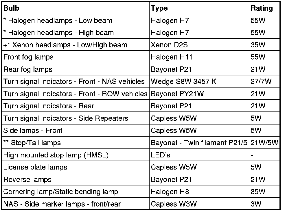 * NAS vehicles - Cornering lamps are not fitted to these vehicles.