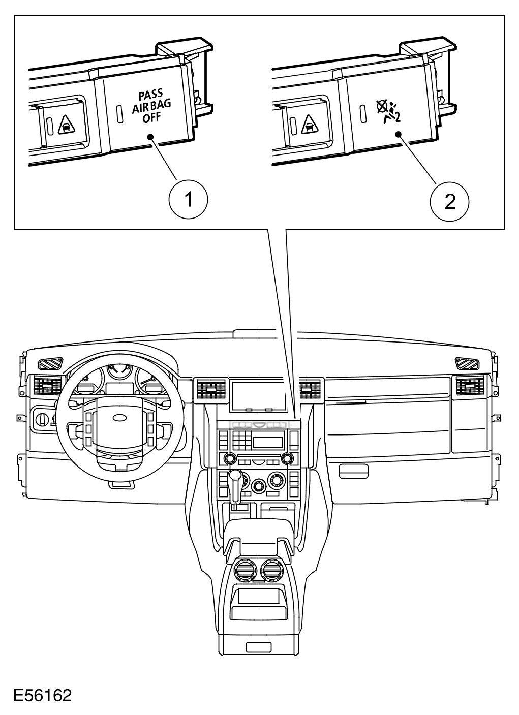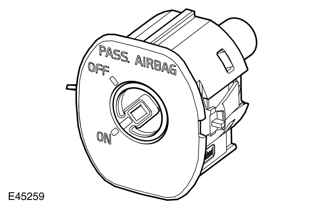 The passenger air bag deactivation switch provides a method of manually disabling the passenger air bag on all vehicles except Australian specification and those fitted with the occupant classification system. The switch is installed in the front passenger end of the instrument panel and is operated by the ignition key.