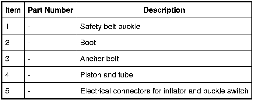 On receipt of a fire signal from the RCM (restraints control module), the inflator generates nitrogen gas that rapidly expands to drive the piston along the tube, pulling the cable and drawing the safety belt buckle downwards.
