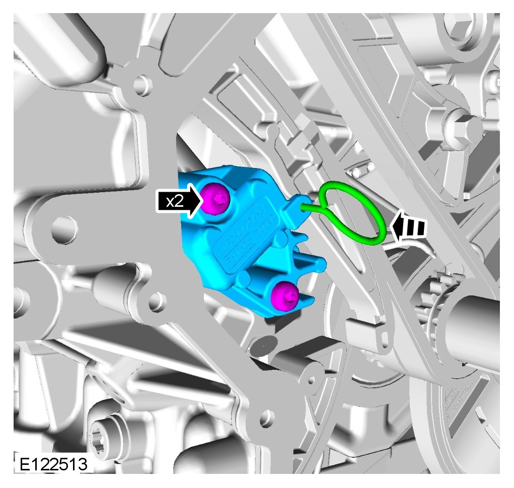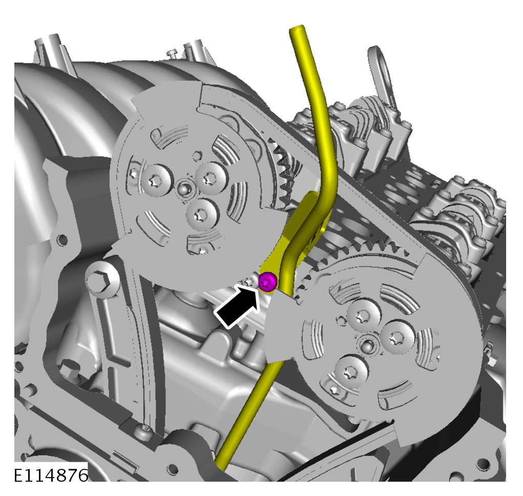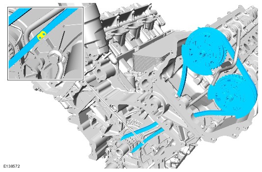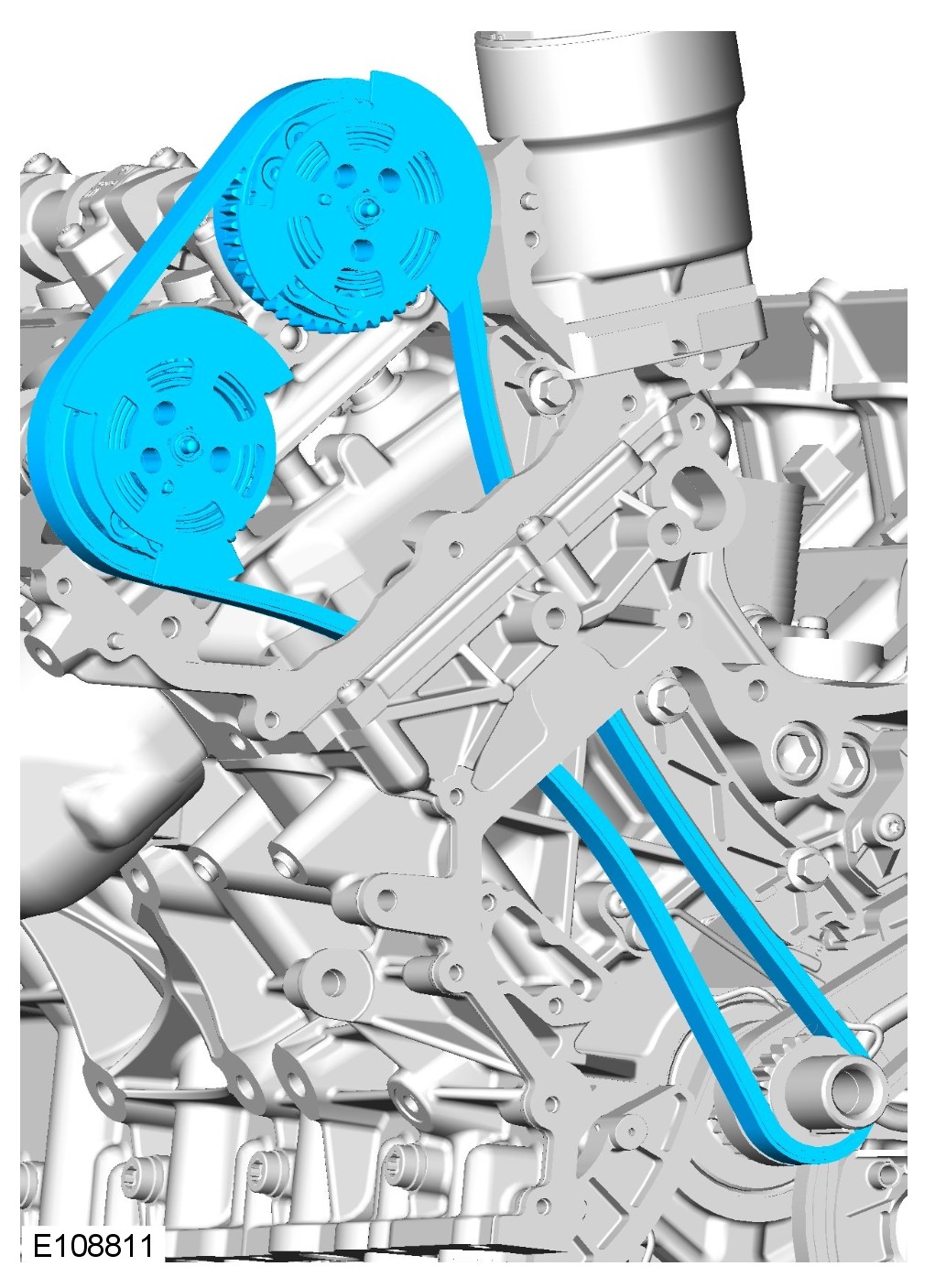 1 Make sure the tensioner piston is fully extended. Then fully depress and lock the tensioner piston with the grenade pin before installation, failure to do this may result in damage to the engine.