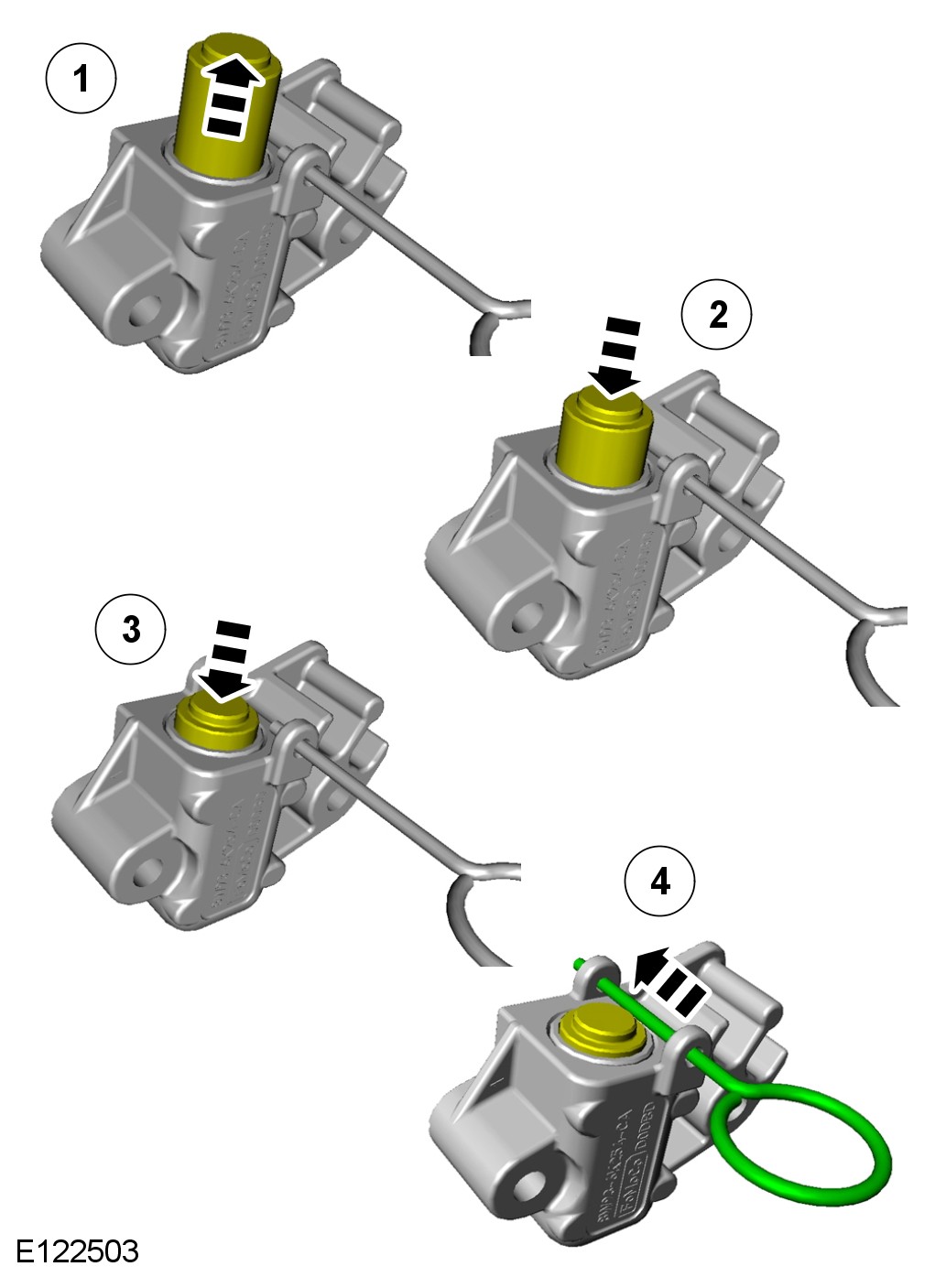 2 Make sure the tensioner piston is fully extended. Then fully depress and lock the tensioner piston with the grenade pin before installation, failure to do this may result in damage to the engine.
