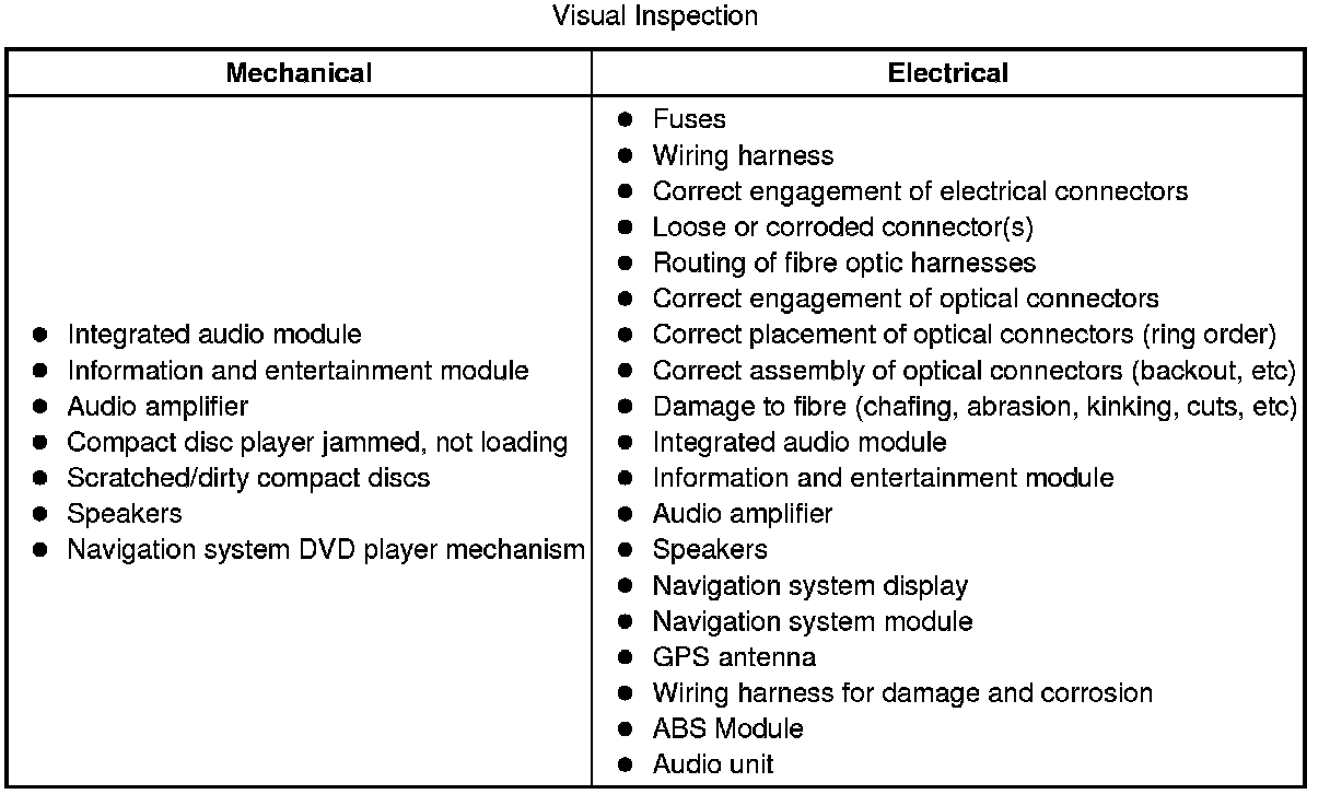 2 Visually inspect for obvious signs of mechanical or electrical damage and system integrity.