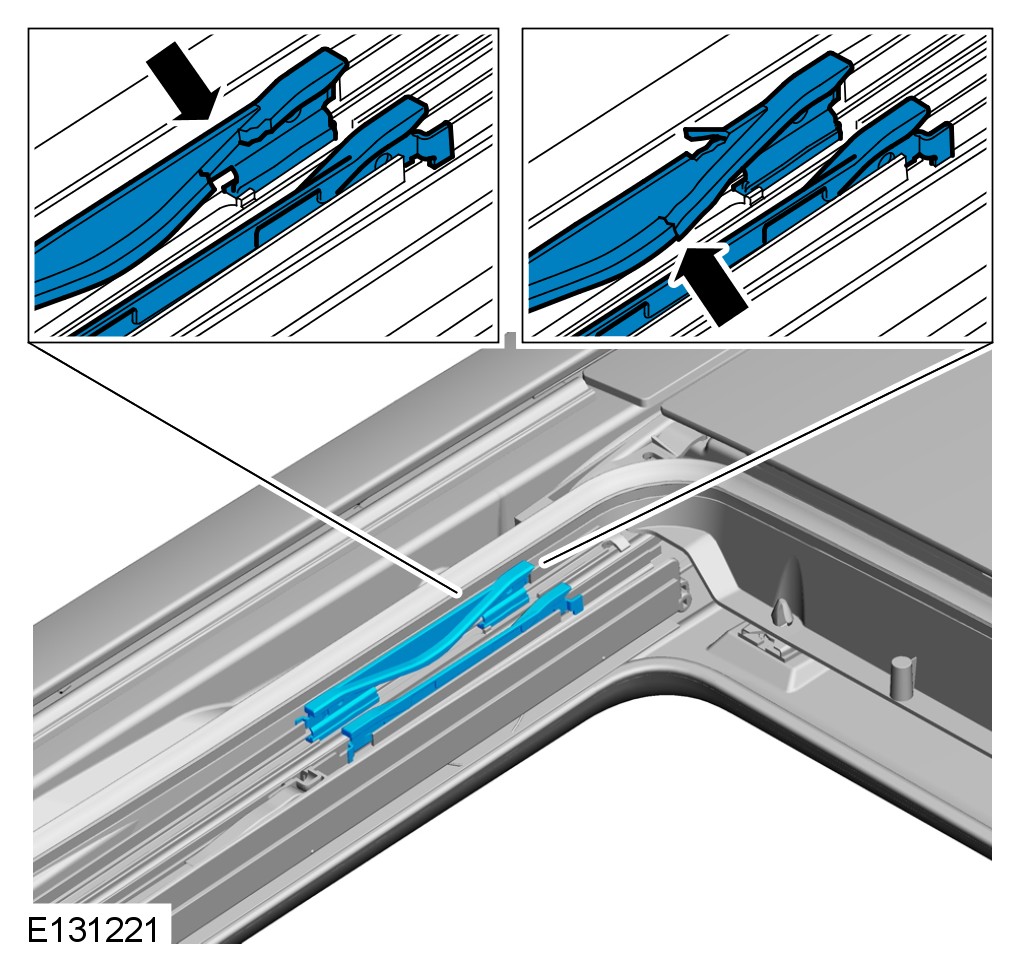 Correctly relocate and secure, or replace if required the roof opening panel air deflector. For additional information, refer to Air Deflector Service and Repair