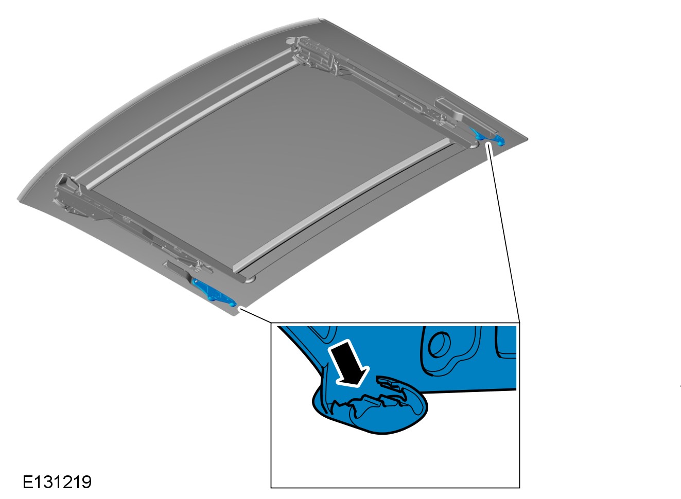 Carry out visual and manual inspection of the roof opening panel blind mounting pins and slide shoe(s).