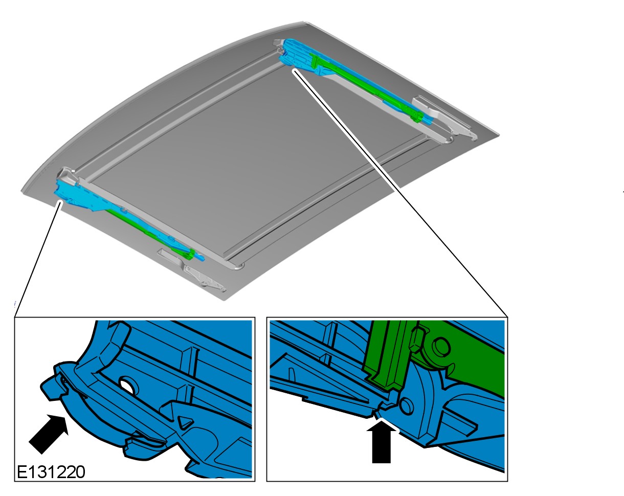 Correctly reassemble the mounting pins and slide shoe(s) reinstall the roof opening panel blind. Check for correct operation.