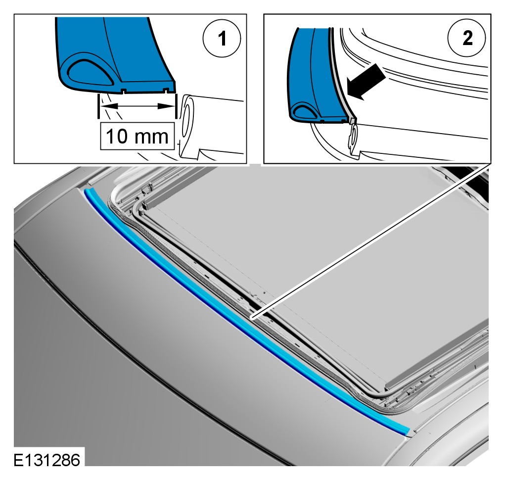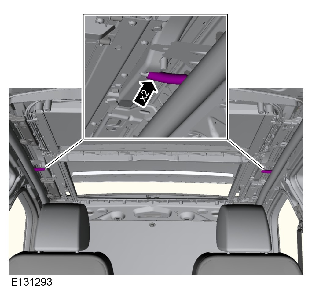 Replace the side acoustic seals. Clean all relevant surfaces then correctly position and bond the new side acoustic seals to the roof opening panel.