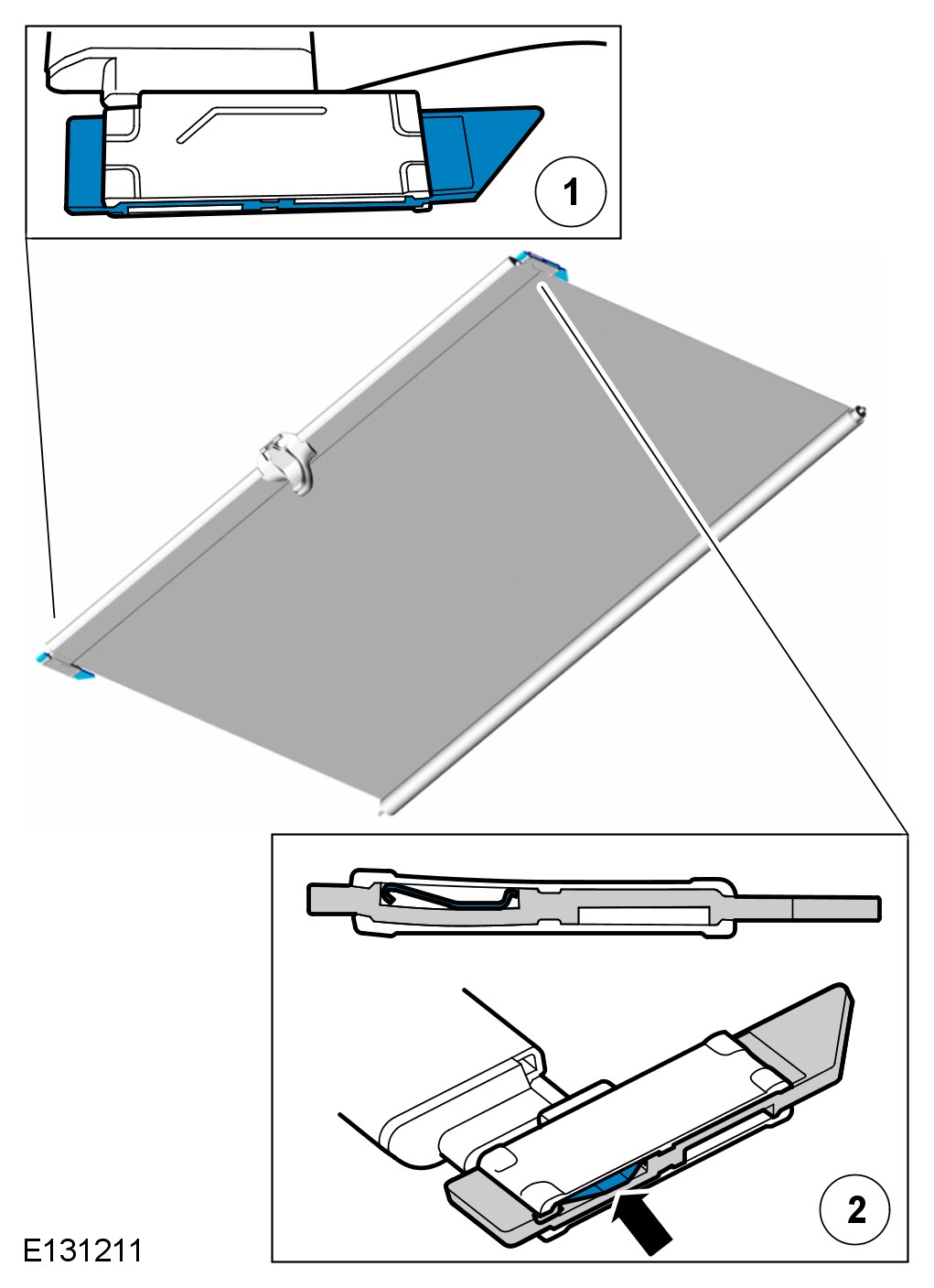 1 Operate the roof opening panel blind through all movements and latch to the frame.