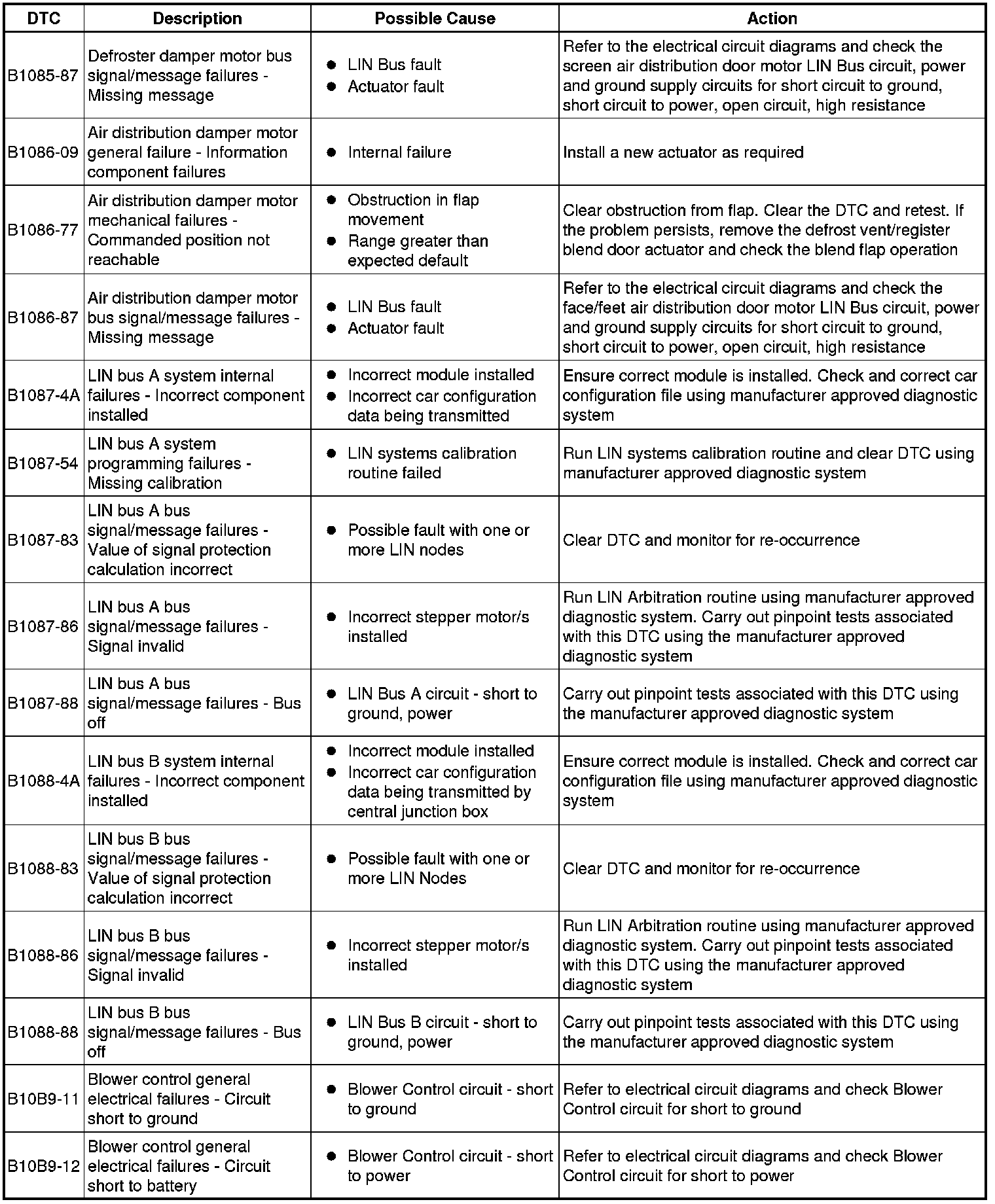 Generic scan tools may not read the codes listed, or may read only 5-digit codes. Match the 5 digits from the scan tool to the first 5 digits of the 7-digit code listed to identify the fault (the last 2 digits give extra information read by the manufacturer-approved diagnostic system).