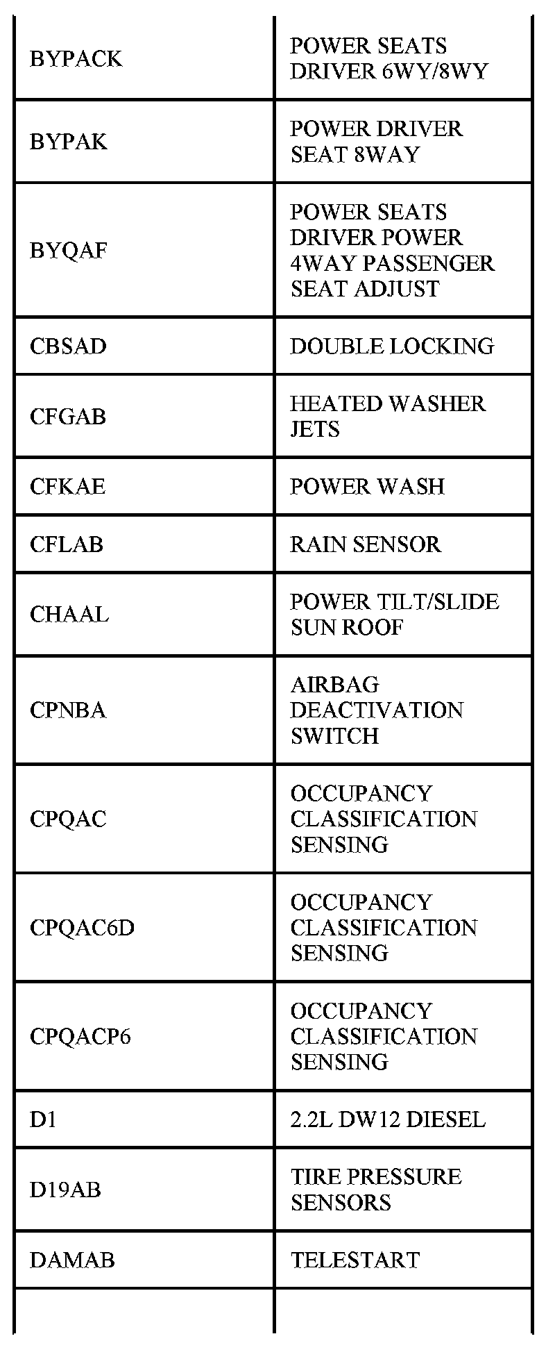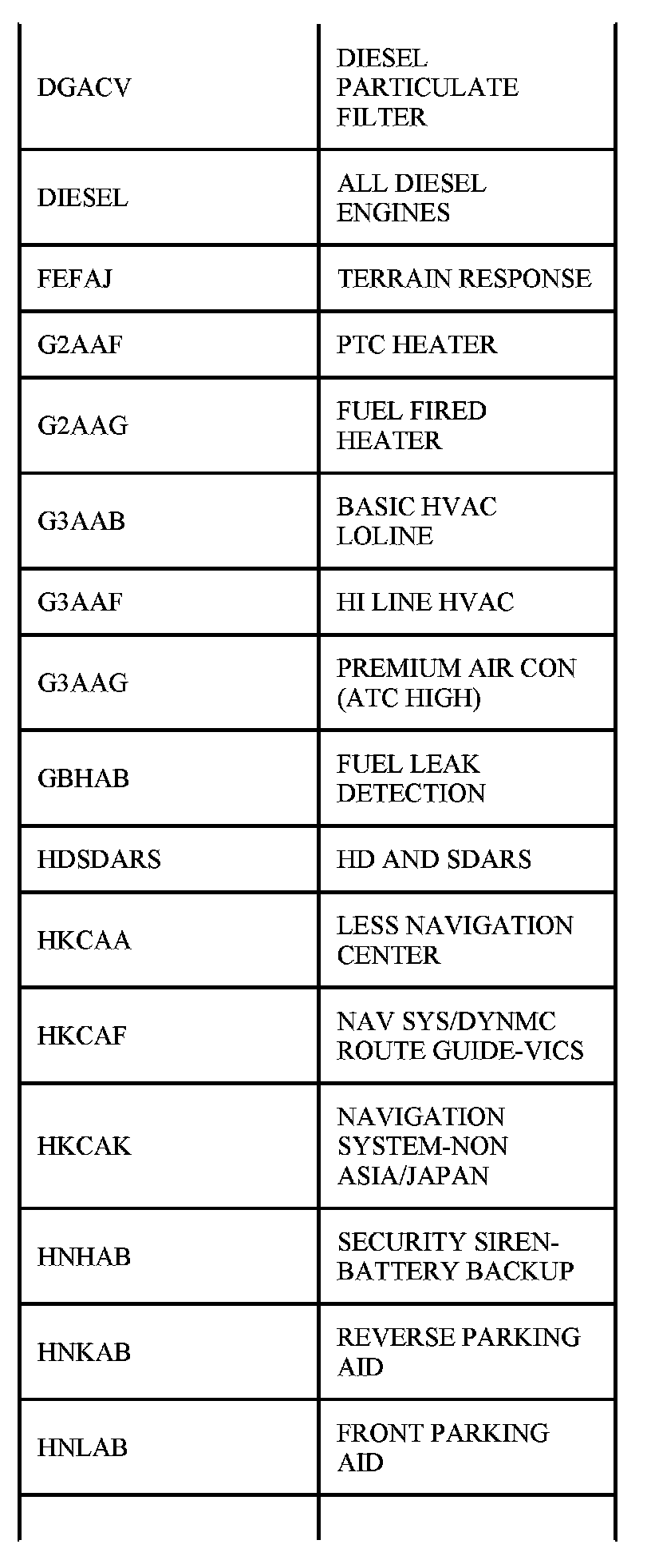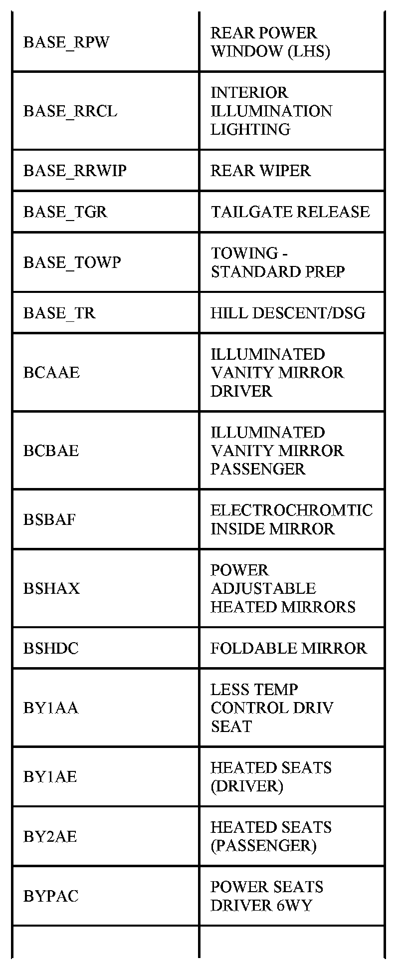 The following table contains a list of circuit (Cct) reference numbers against a description of the applicable model or option. This information should be used in conjunction with the connector pin-out tables to determine the wire configuration of the vehicle under test.