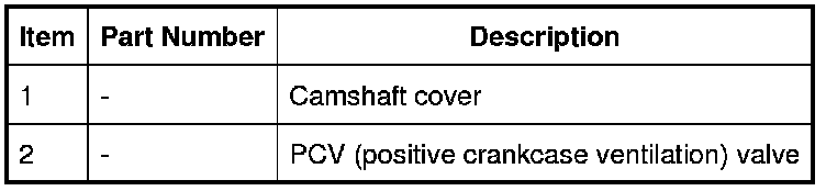 The engine crankcase is ventilated through a PCV (positive crankcase ventilation) valve located on the camshaft cover. The crankcase gasses are transferred internally to the PCV (positive crankcase ventilation). The PCV (positive crankcase ventilation) valve prevents reverse airflow into the crankcase.