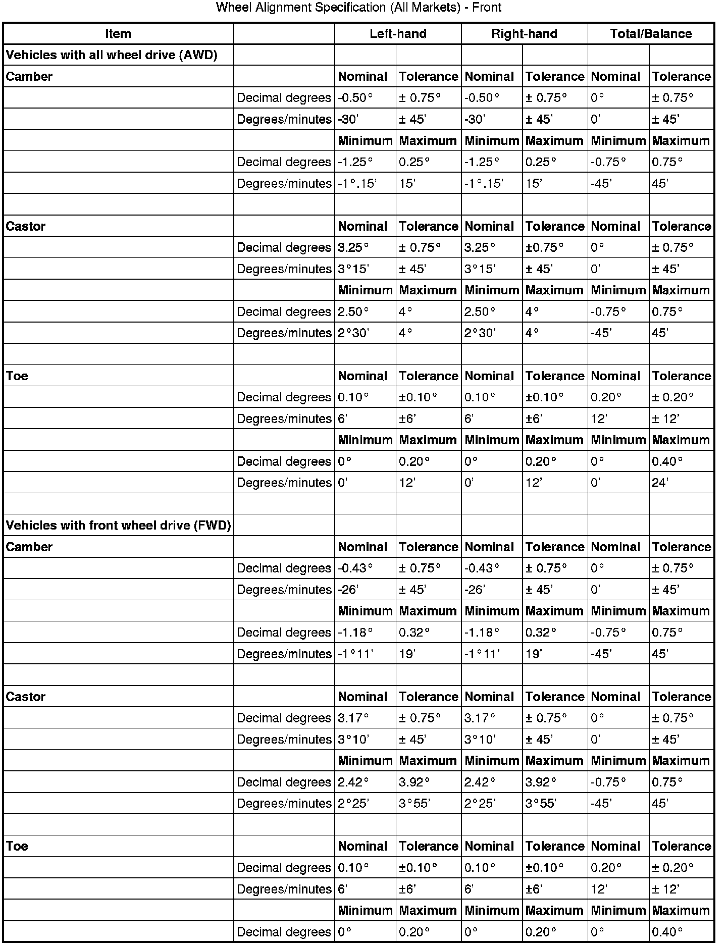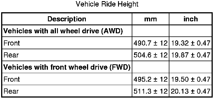 All figures are with vehicle at 'Showroom' ride height - full fluids, full tank of fuel, no occupants/luggage, tires inflated to normal pressures