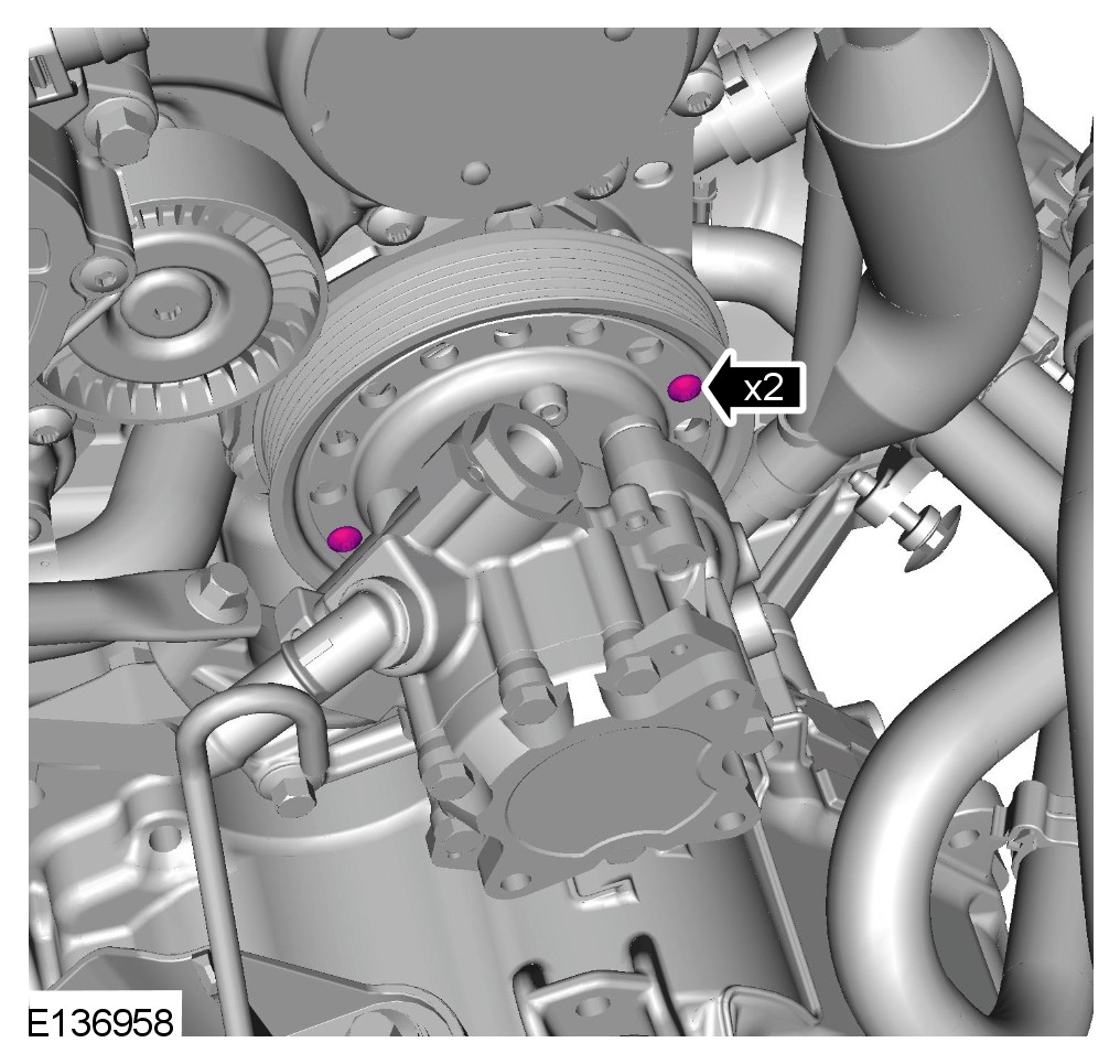 Make sure that the coolant pump drive is installed to the noted position in the power steering pump pulley.