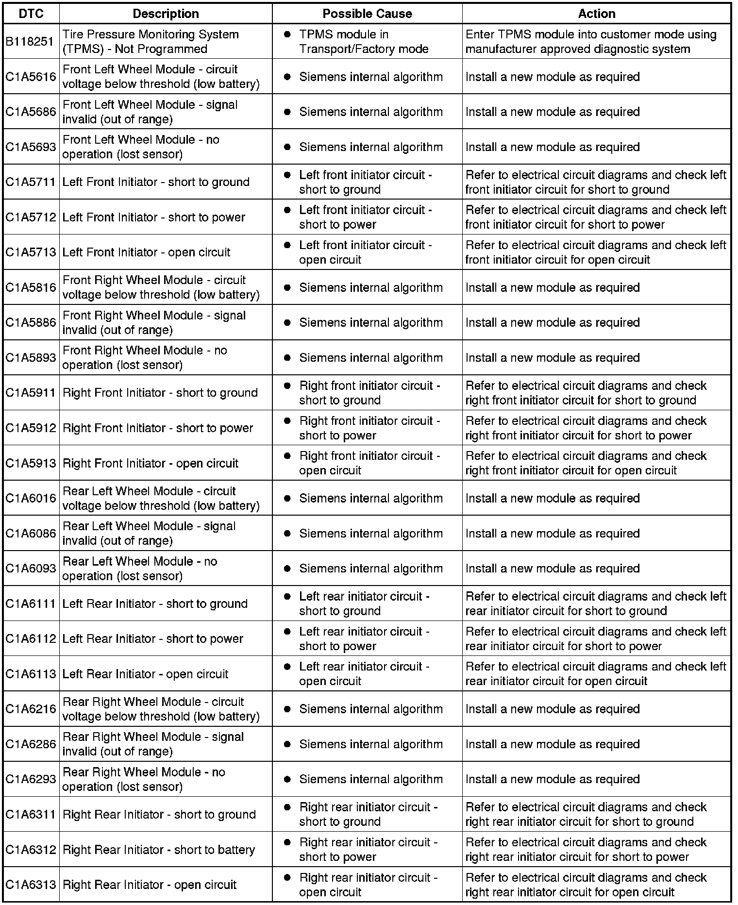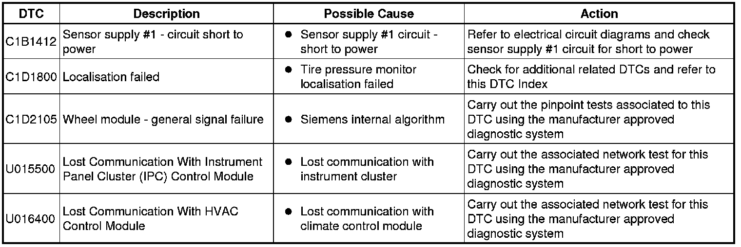 Tire Pressure Monitor System DTCs will be logged in the Central Junction Box (CJB).