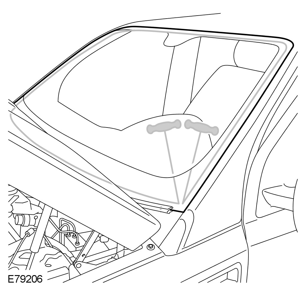 5 From inside the vehicle, cut the windshield sealant using the glazing cutting wire.