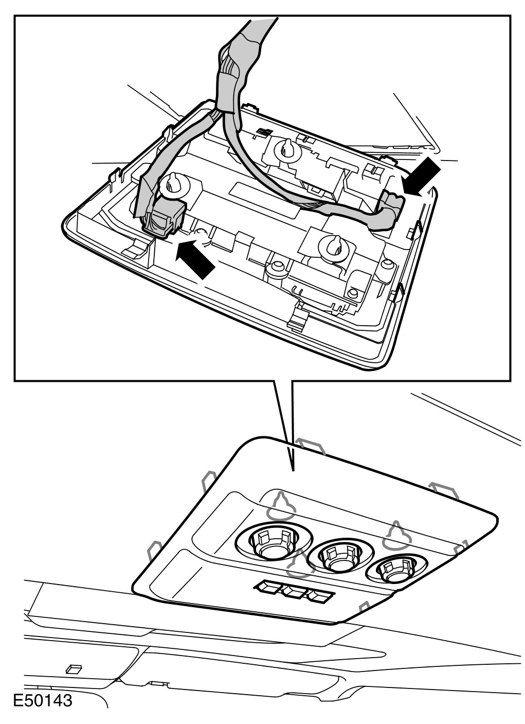 2 Install the rear overhead console.