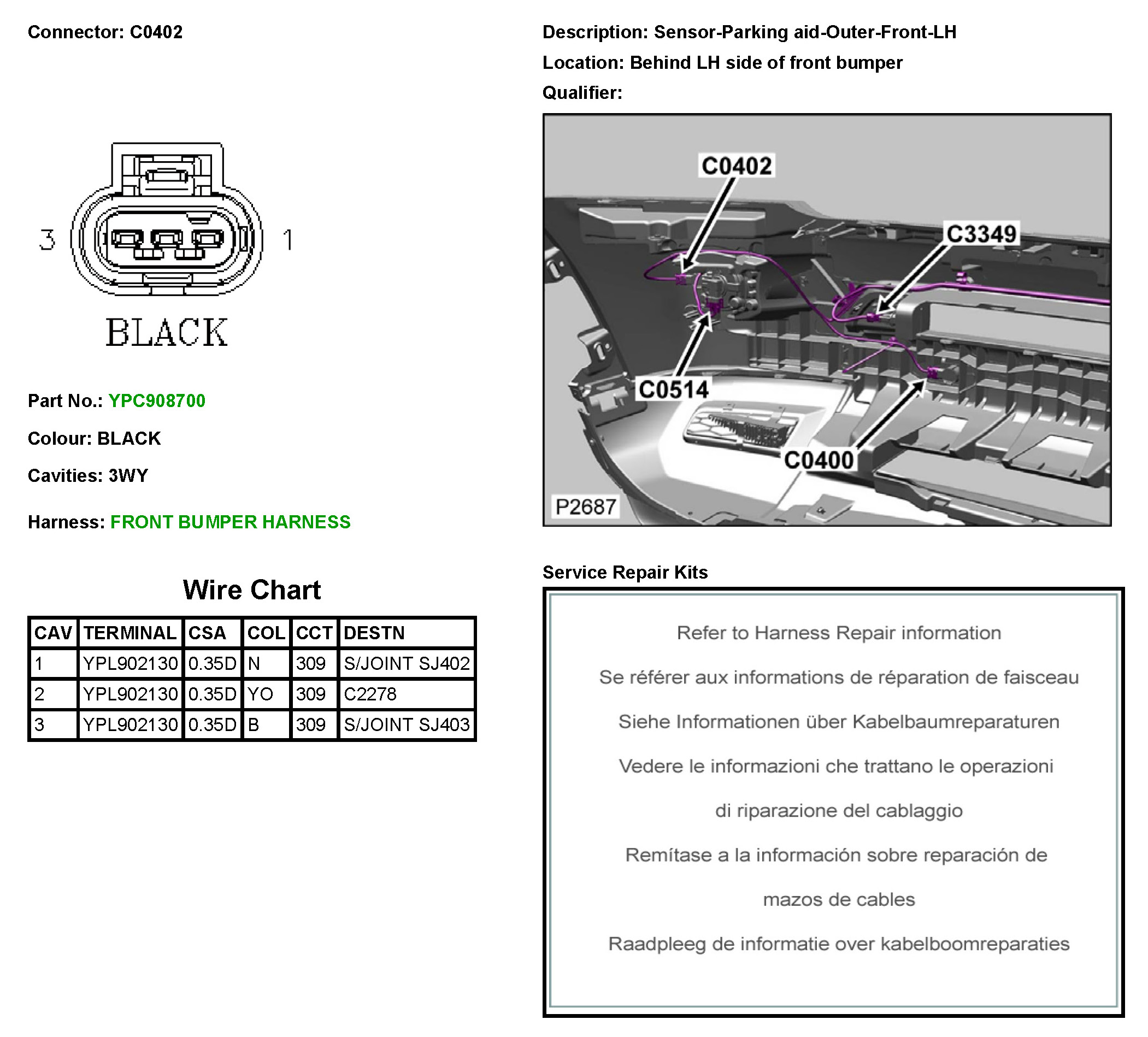 C0402 Sensor-Parking Aid-Outer-Front-LH