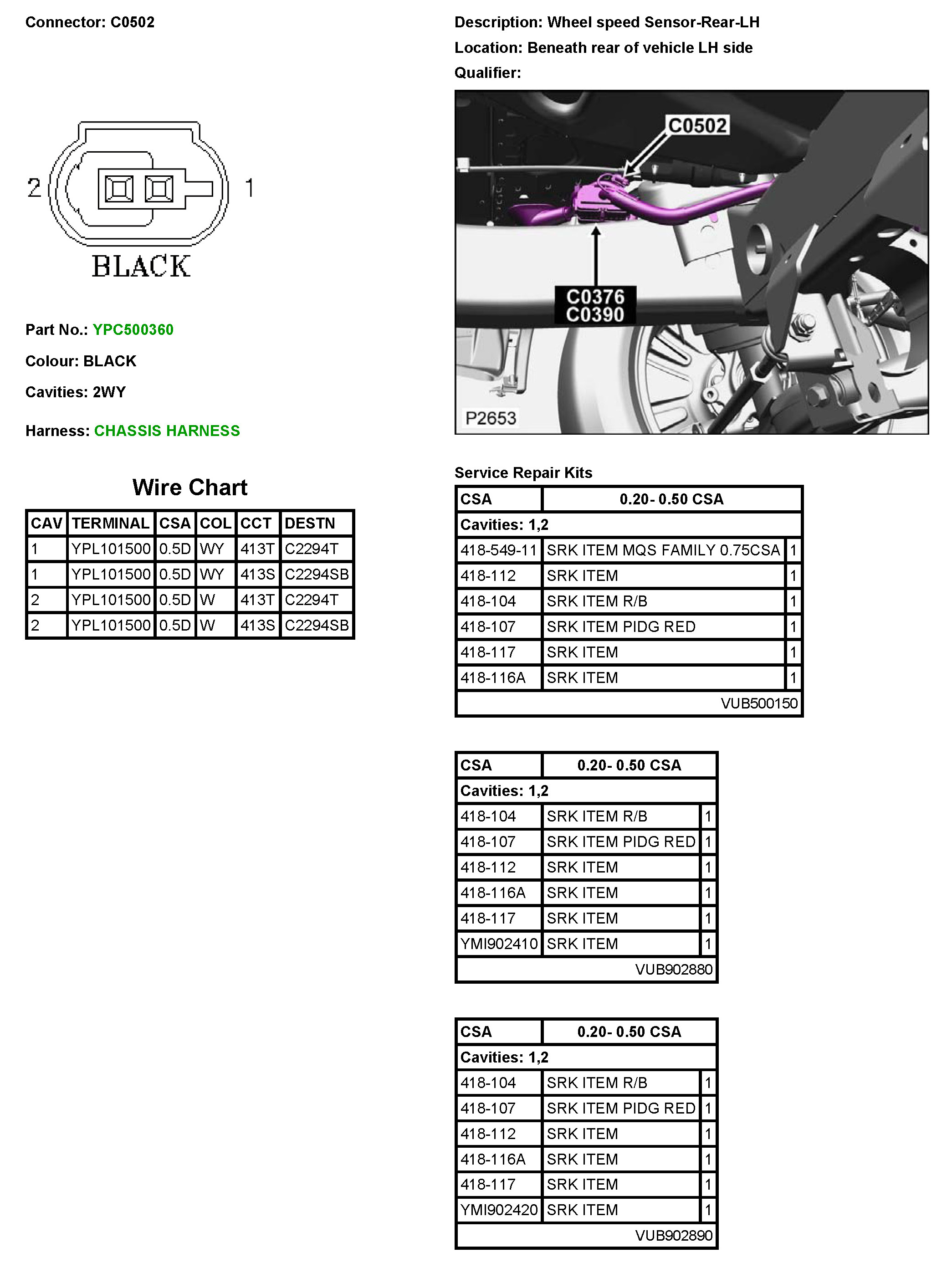 C0502 Wheel Speed Sensor-Rear-LH