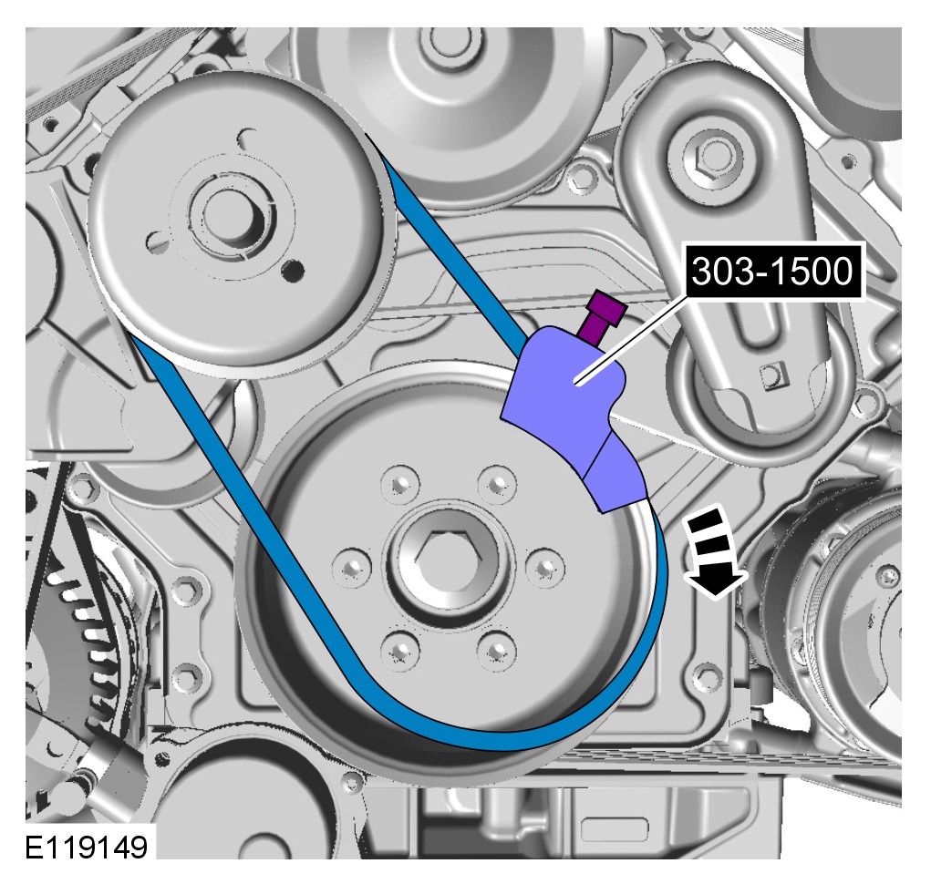 3 Rotate the engine clockwise twice, making sure that the belt is seated on both pulleys correctly.