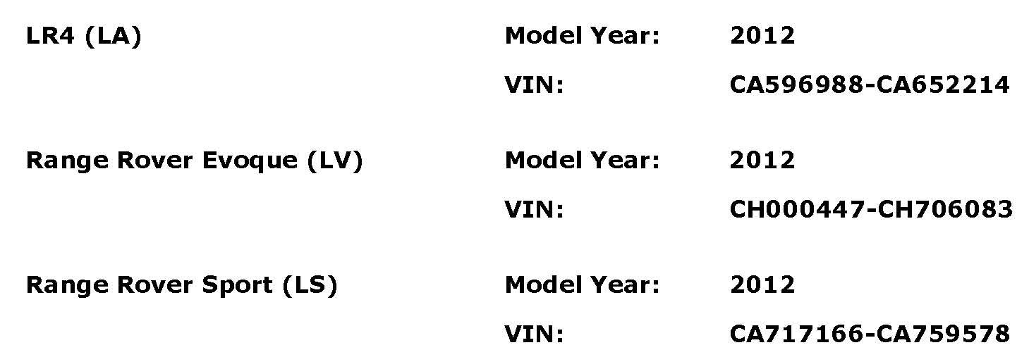 AFFECTED VEHICLE RANGE: