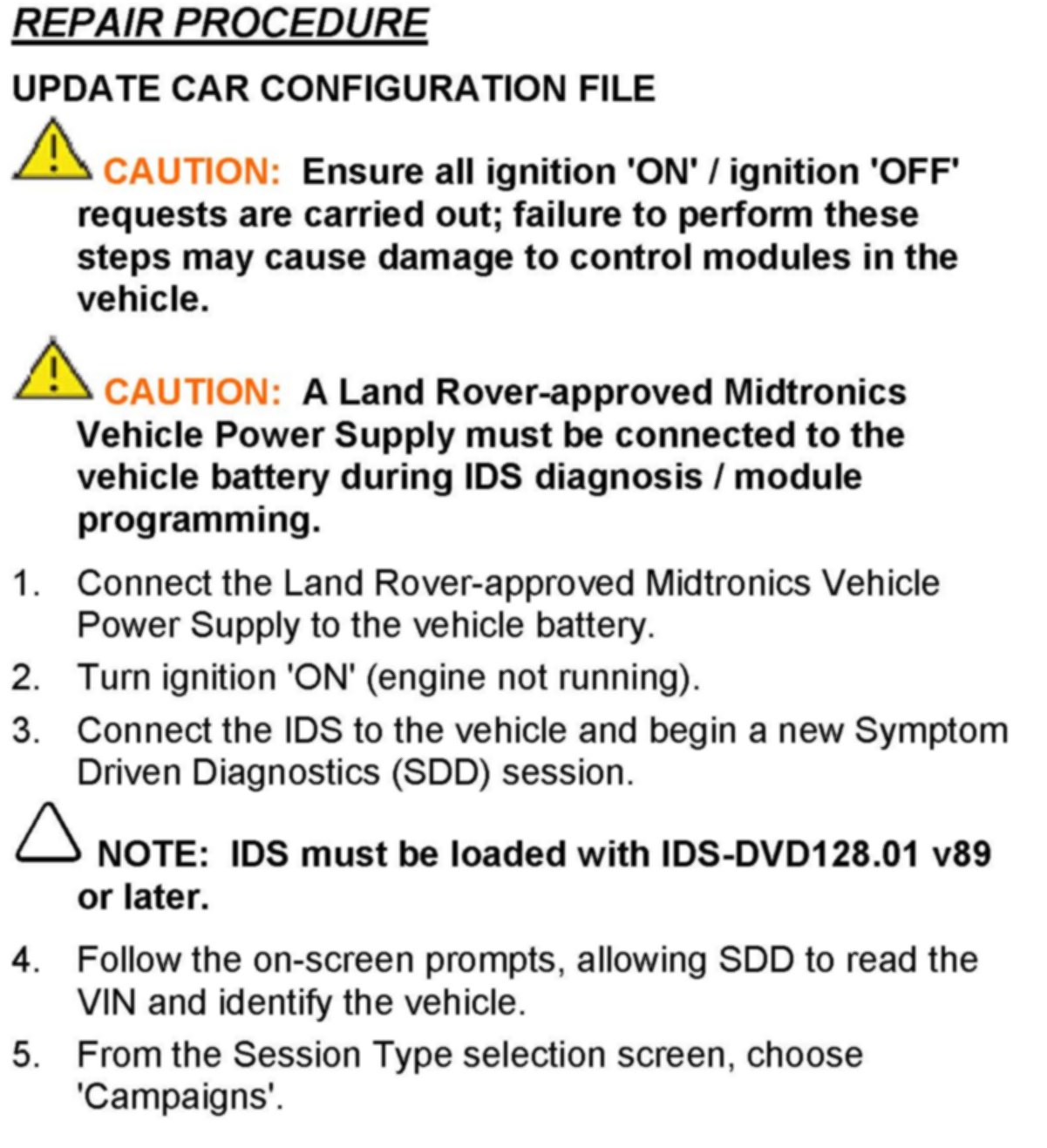 IDS with latest IDS-DVD and Calibration File; first available on IDS-DVD128.01 v89 Land Rover-approved Midtronics Vehicle Power Supply