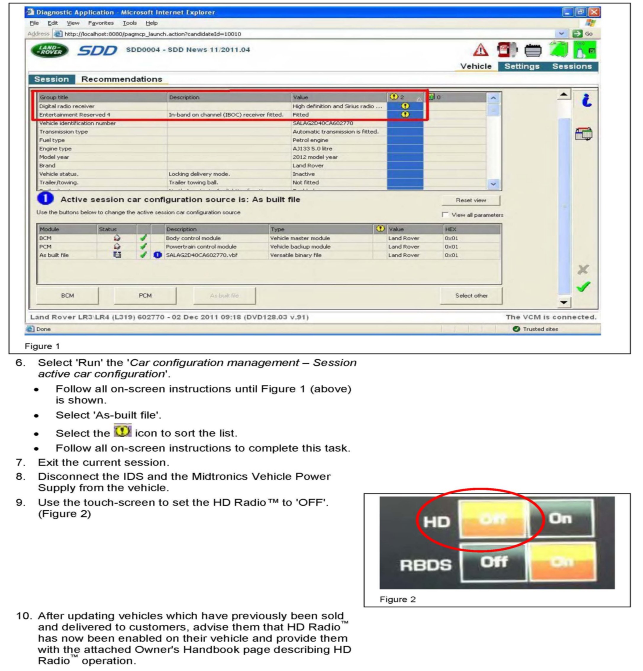 A concern had been identified on a limited number of 2012 model year LR4 vehicles within the VIN range above where the HD Radio, function may not be enabled.