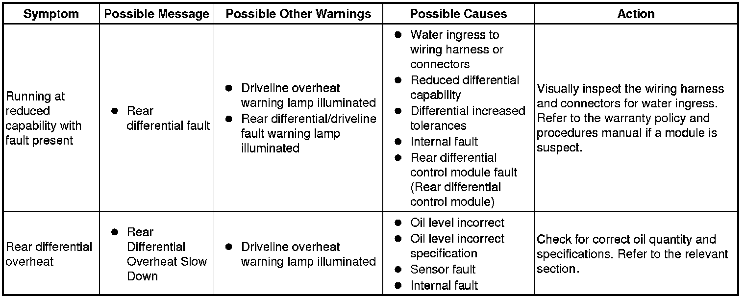 For a list of Diagnostic Trouble Codes (DTCs) that could be logged on this vehicle, please refer to A L L Diagnostic Trouble Codes (DTC). A L L Diagnostic Trouble Codes ( DTC ) For additional information, refer to Diagnostic Trouble Code (DTC) Index - DTC: Rear Differential Control Module (RDCM) Diagnostic Trouble Code Descriptions