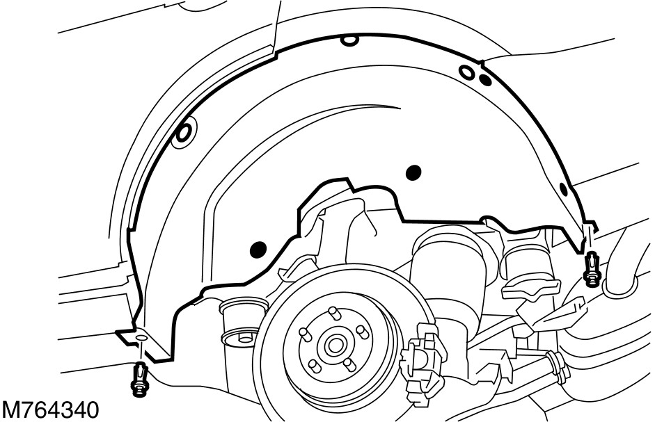 3 Remove the 2 clips securing the rear fender splash shield to the rocker panel and rear bumper.