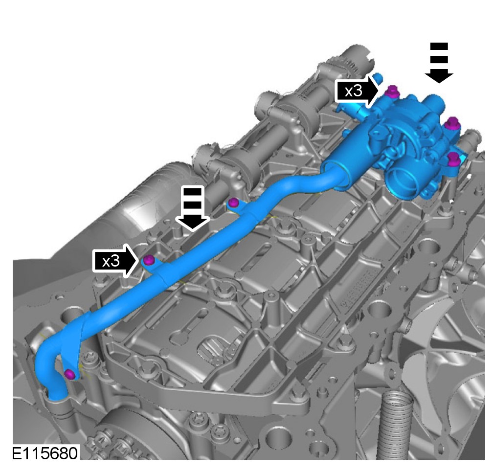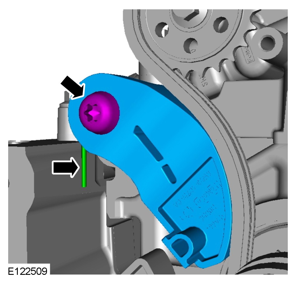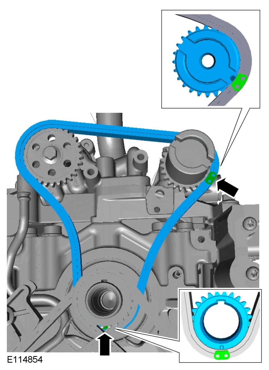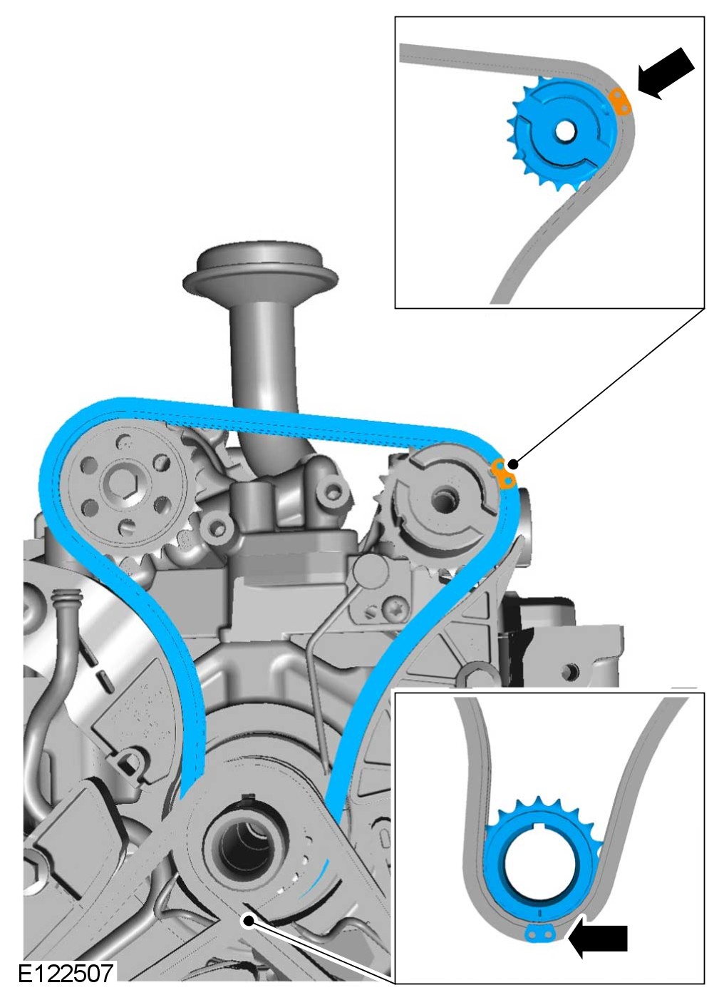 3 Install the lower timing chain making sure the colored chain links align correctly with the fuel rail high-pressure fuel pumps camshaft and crankshaft sprocket markings.